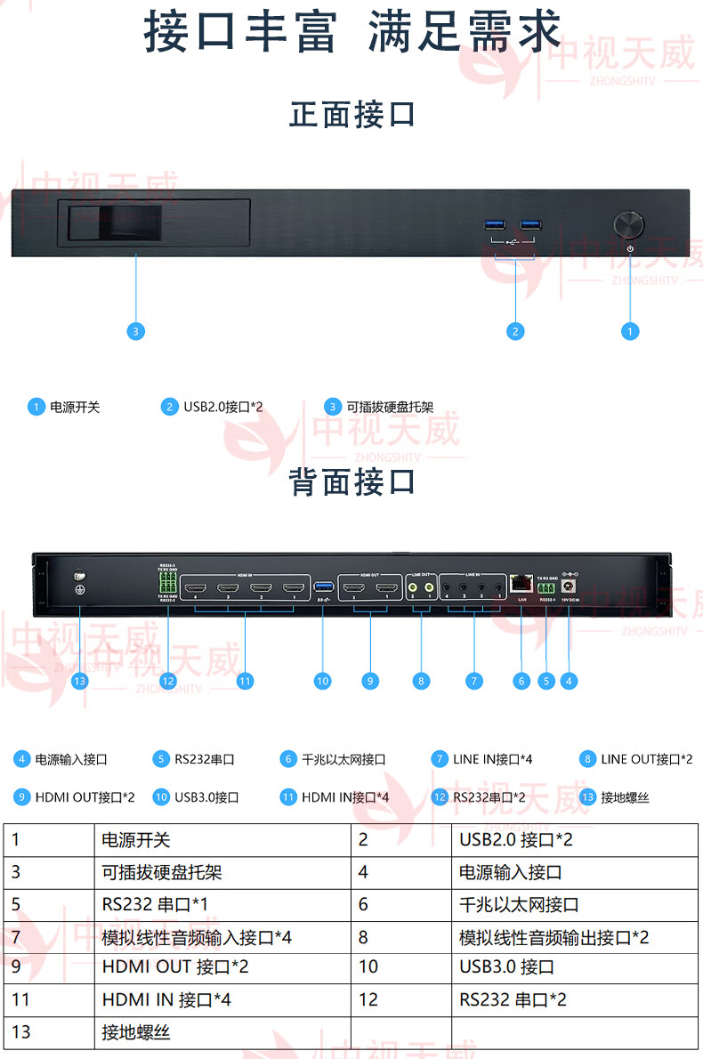 中视天威4路高清会议录音机多功能厅国产嵌入式视频会议一体机 教学直播点播 内置课堂语音转写系统 会议录播一体机