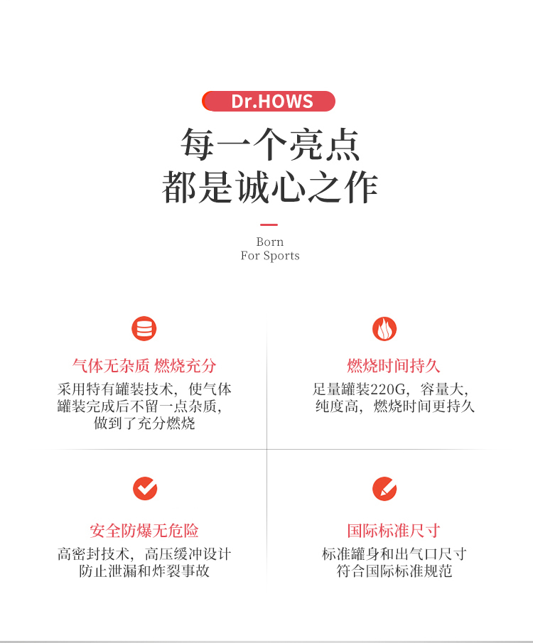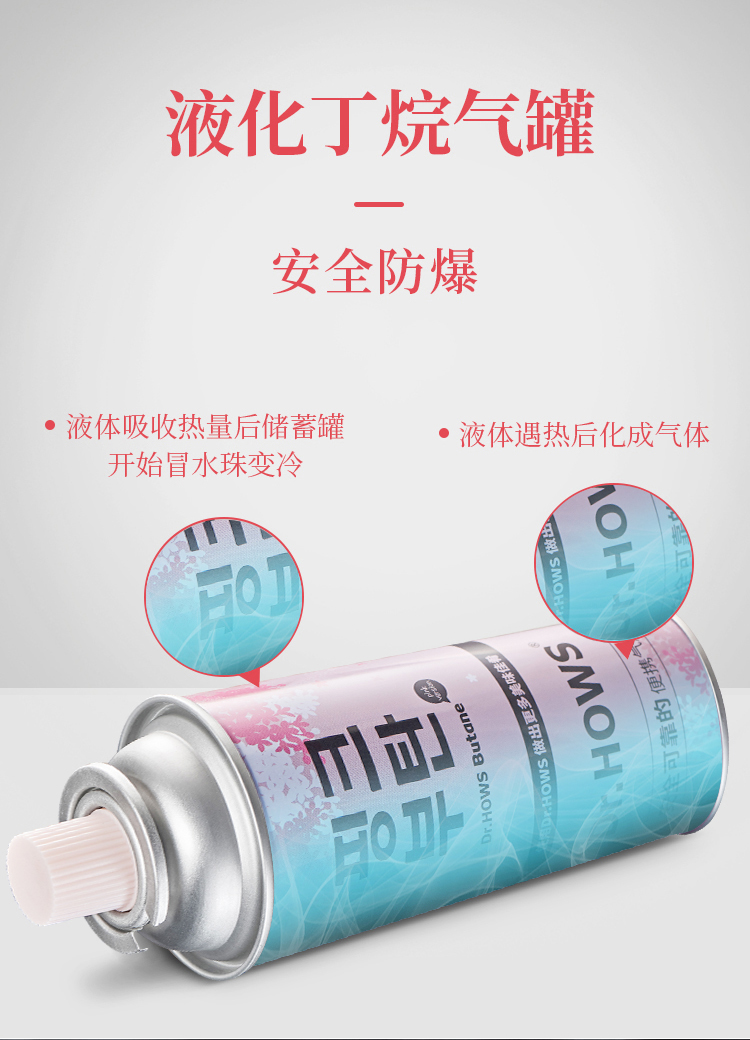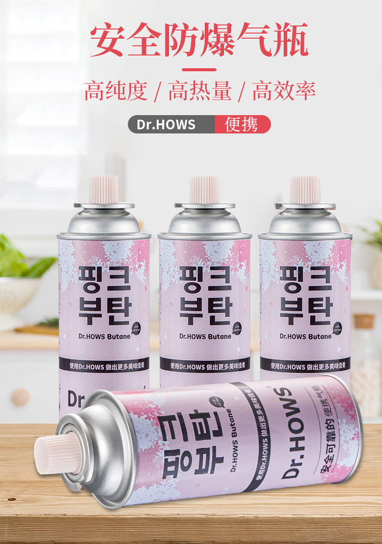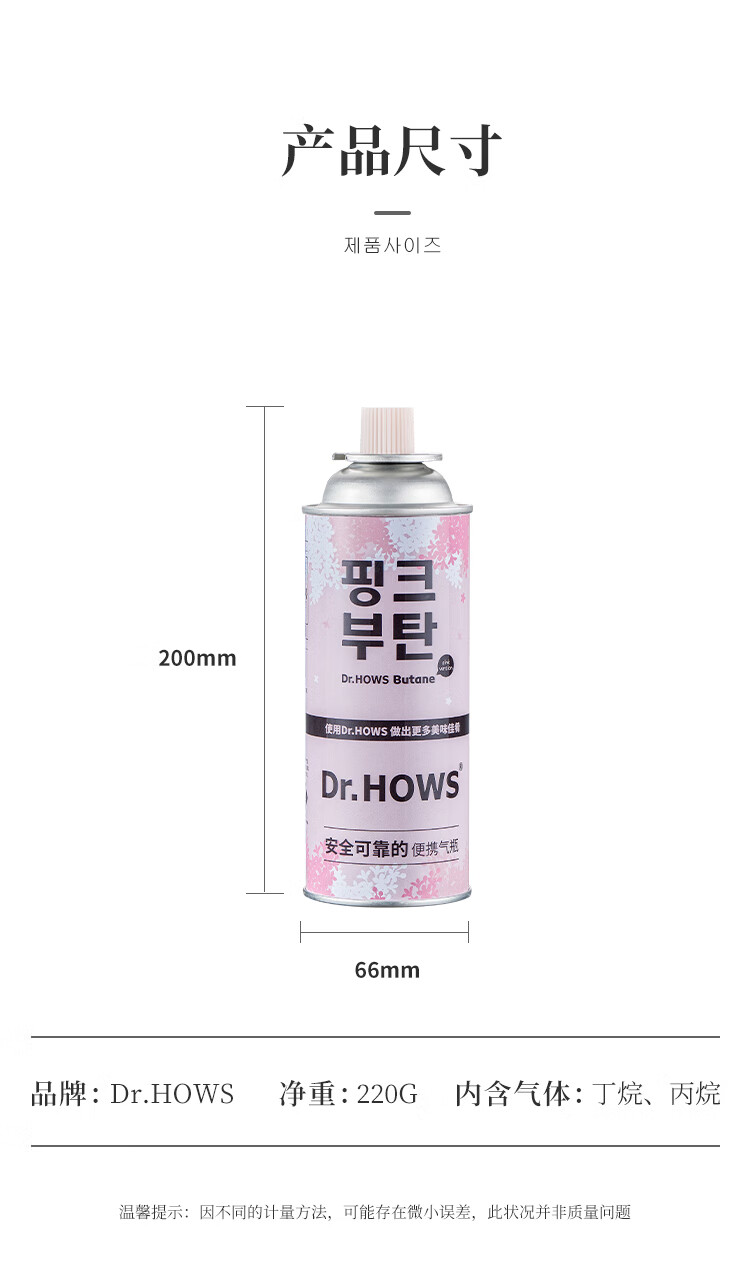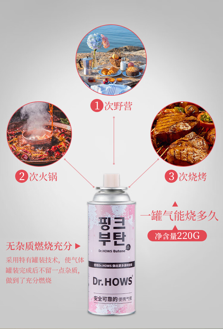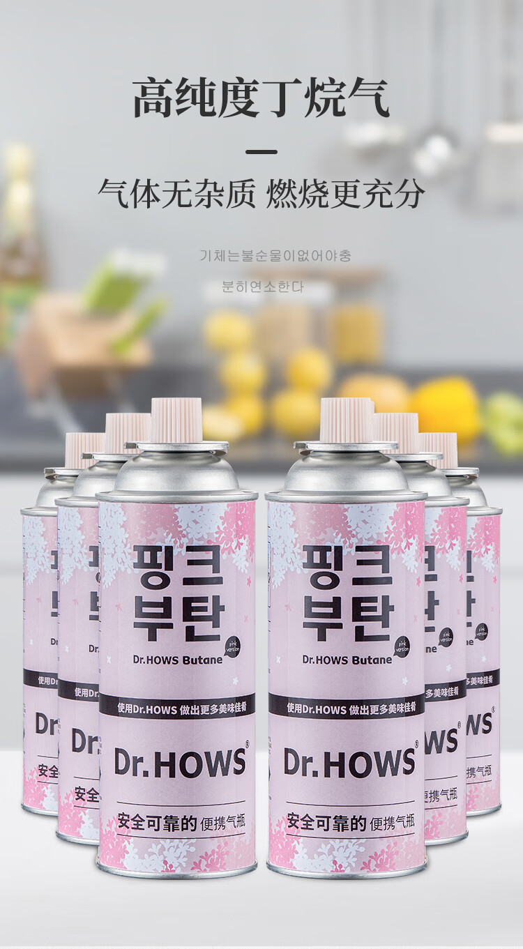 Dr.HOWS 韩国气罐户外便携式气瓶卡式炉防爆瓦斯气体丁烷气通用卡式气罐 Dr.HOWS粉色220g*8瓶