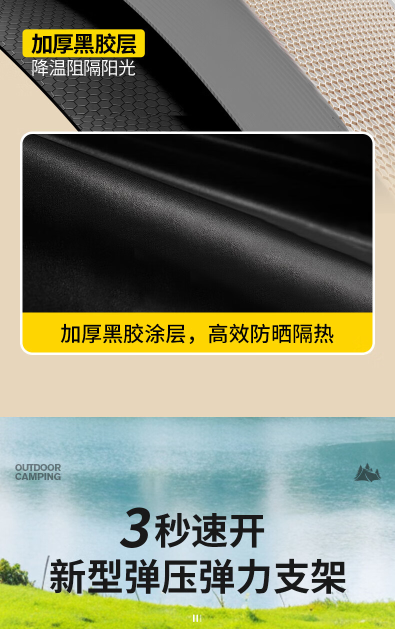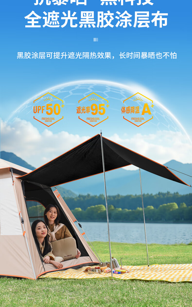 何佳功新燕尾天幕户外露营懒人免安装加厚黑胶防晒遮阳防雨速搭天幕 速搭型12㎡银胶天幕3.3*3.6米2-4人(1