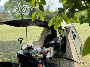 想要帐篷的想法很突然,就决定在京东上买了。第二天就能到,比较方便。收货后,打开透气。没有很重的味道。帐篷很大,自带天幕,遮阴效果更好。四面透风,每一面可以打开,且还有防蚊网,设计很贴心。春暖花开的时候带上帐篷,随便找个公园草坪,有水有树的地方,就很安逸。