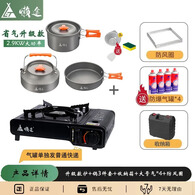 懒途便携式防爆卡式炉套装户外炉具露营野炊卡磁炉家用火锅燃气灶全套 升级款黑炉+锅3件+收纳箱+赠气*4