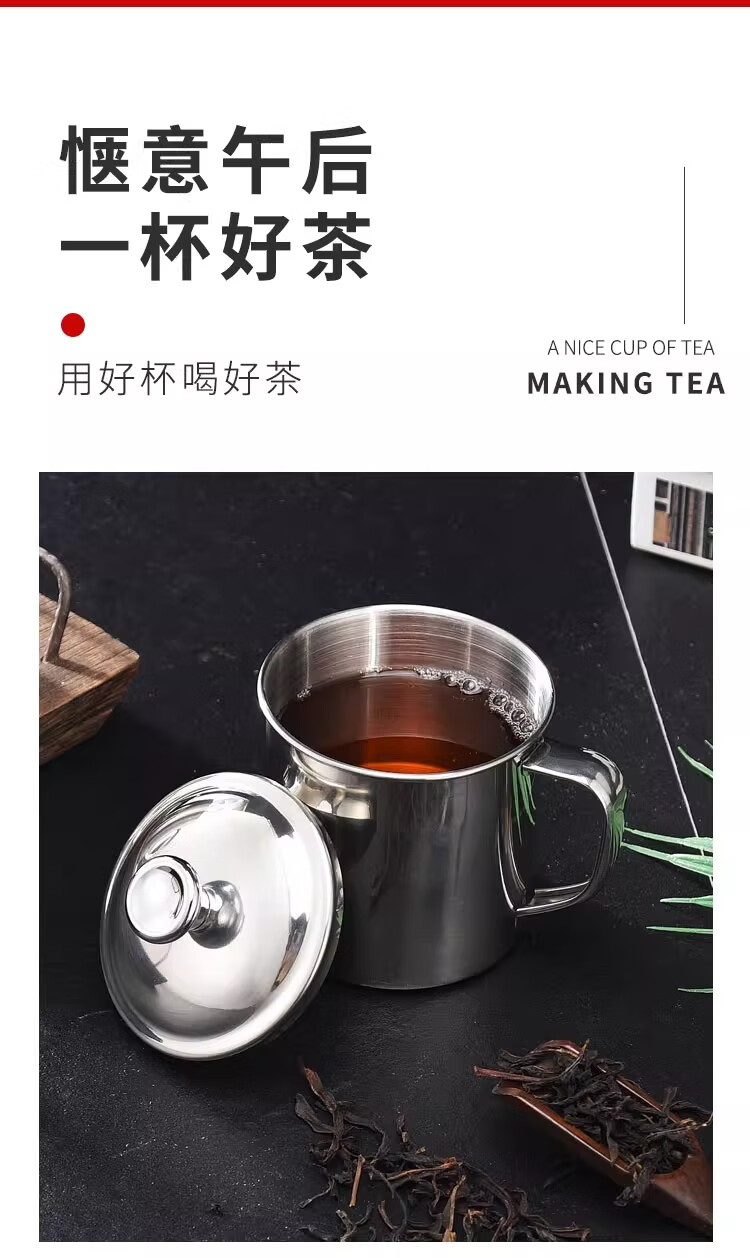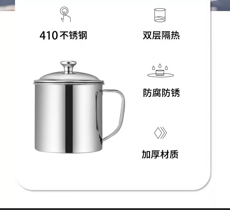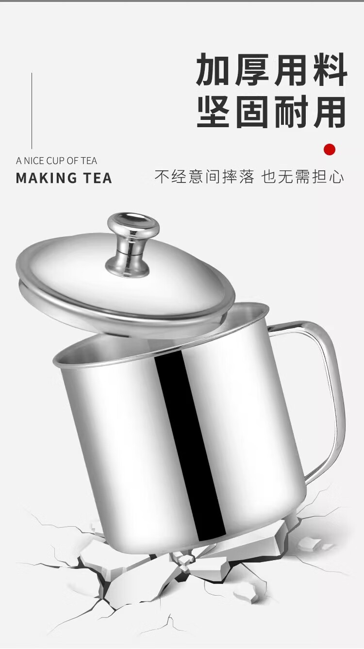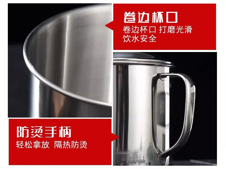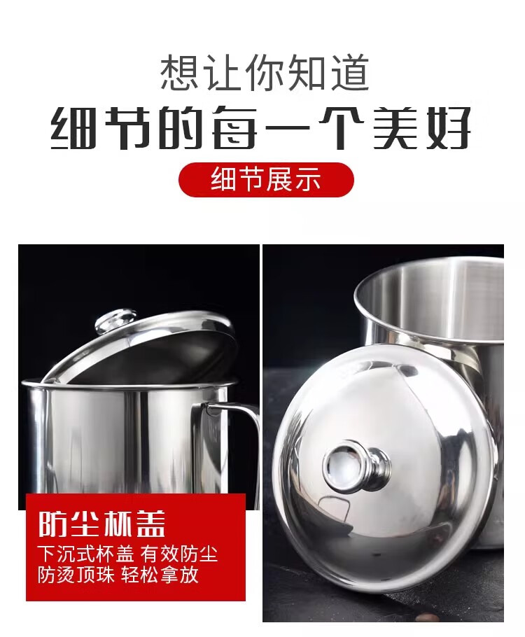 野餐用品不锈钢口杯大容量冷水壶工地水杯茶缸防摔带盖食品级喝水 食品级特厚口杯【1360ml】有盖
