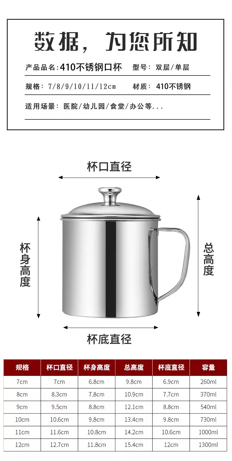 口杯 不锈钢口杯 茶缸内务牙缸 洗漱杯子 学生军训水杯 带字口杯 6无字口杯