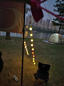 总体不错,杆上还有挂灯的架子,轻,拖的6*8的大天幕