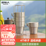 原始人户外水杯可折叠不锈钢水杯便携耐高温伸缩露营杯子野营装备套装杯 304不锈钢套杯(4个装)