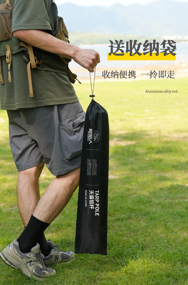 原始人铝合金天幕杆加粗加厚天幕支撑杆固定杆铝杆户外露营支架杆 磨砂黑(2根装)
