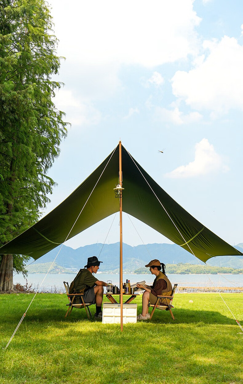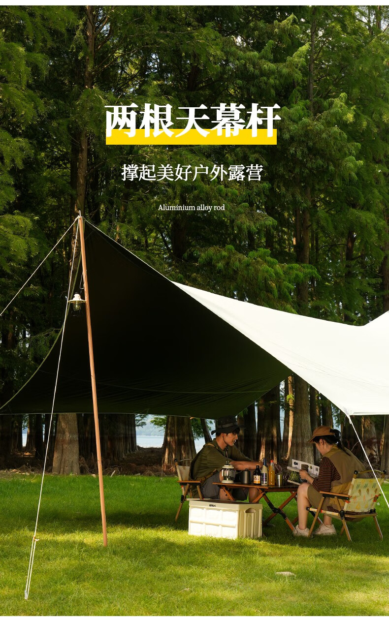 618活动买的 价格很给力 加粗加厚的材质 之前买的天幕自带的是铁材质的 用了两次就弯了 铝合金的要好很多 大品牌质量有保障