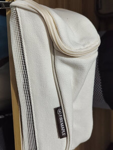 快递一如既往的迅猛,包装一如既往的仔细。材质是帆布加网兜。装餐具足够大,只是比我想象的小一些,如果再能大一点就完美了,可以把厨具也收纳进去。