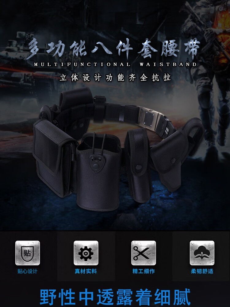 多功能尼龙战术巡逻执勤保安八件六套安保装备金属扣户外外腰带 塑料扣八件套腰带全套