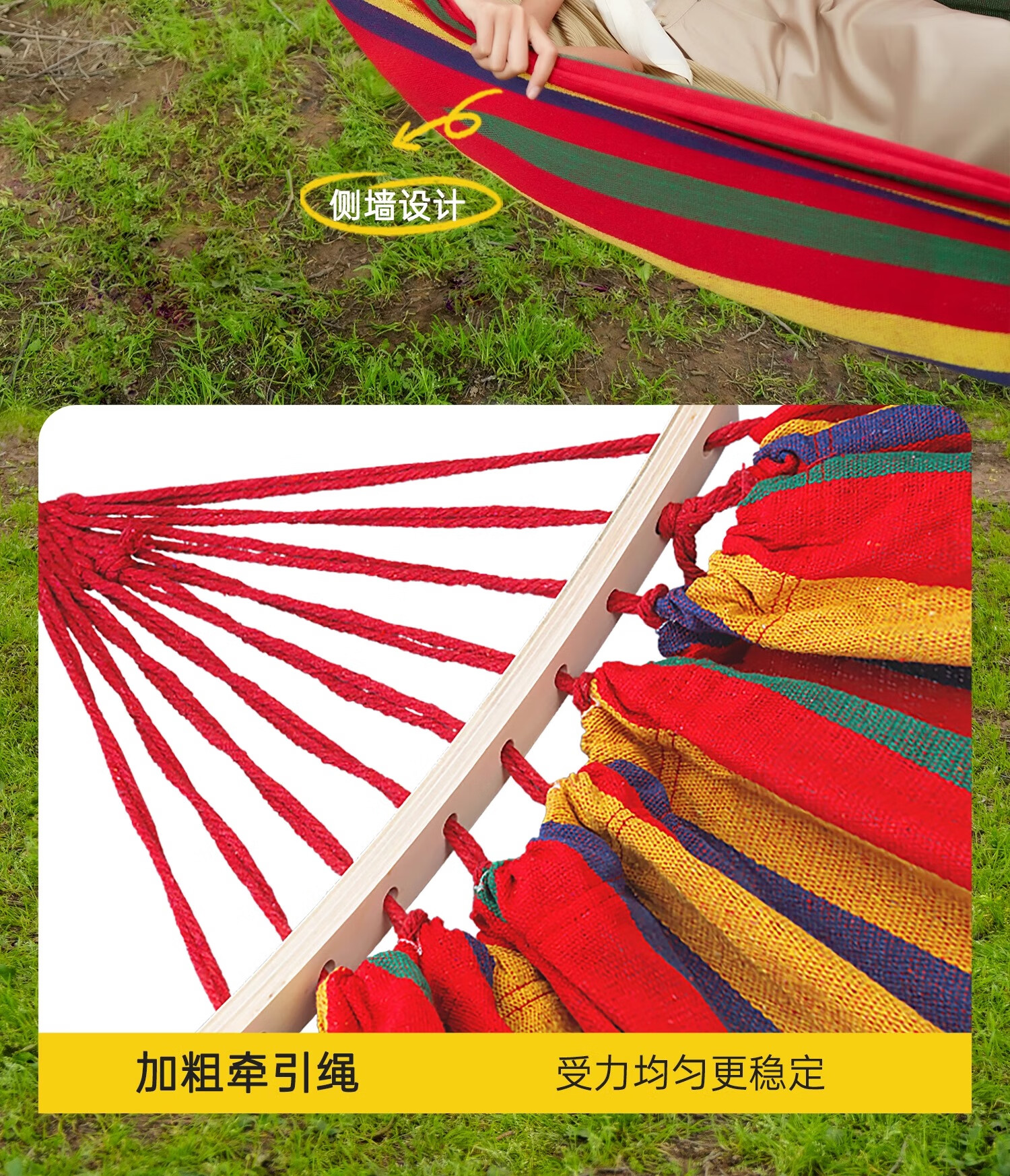 原始人吊床户外成人加厚荡秋千防侧翻摇床庭院掉床宿舍室内儿童网床 单人加厚彩虹+绑绳