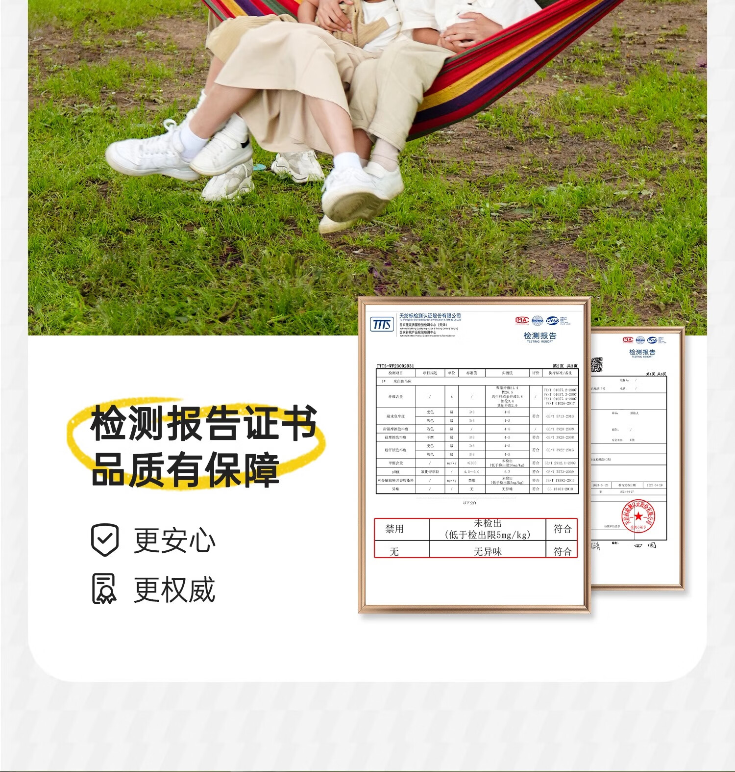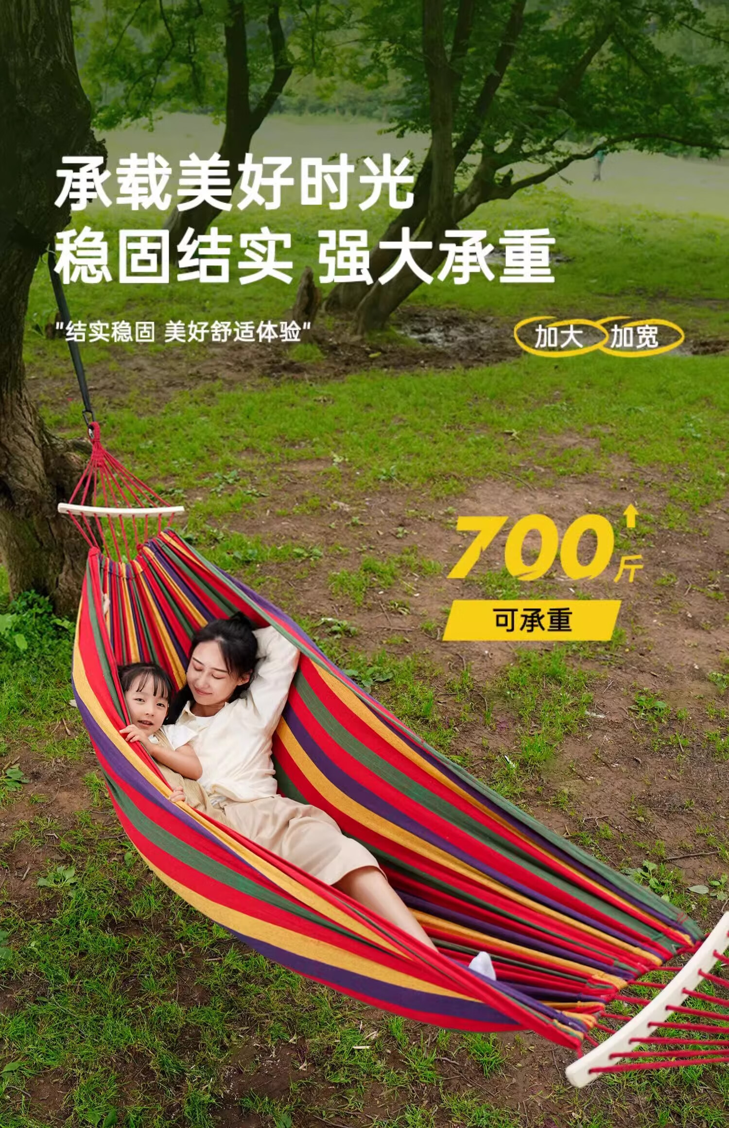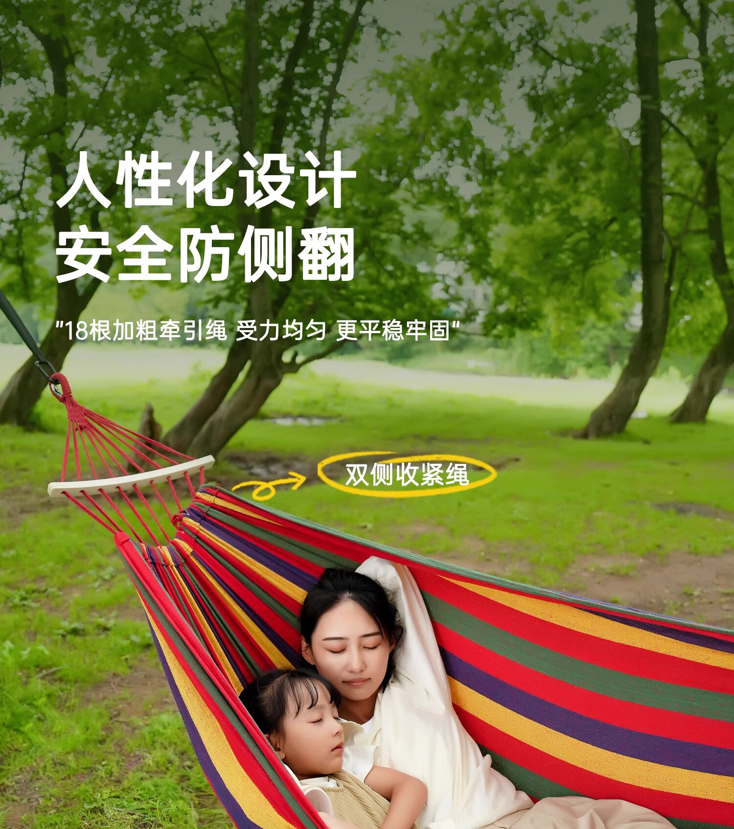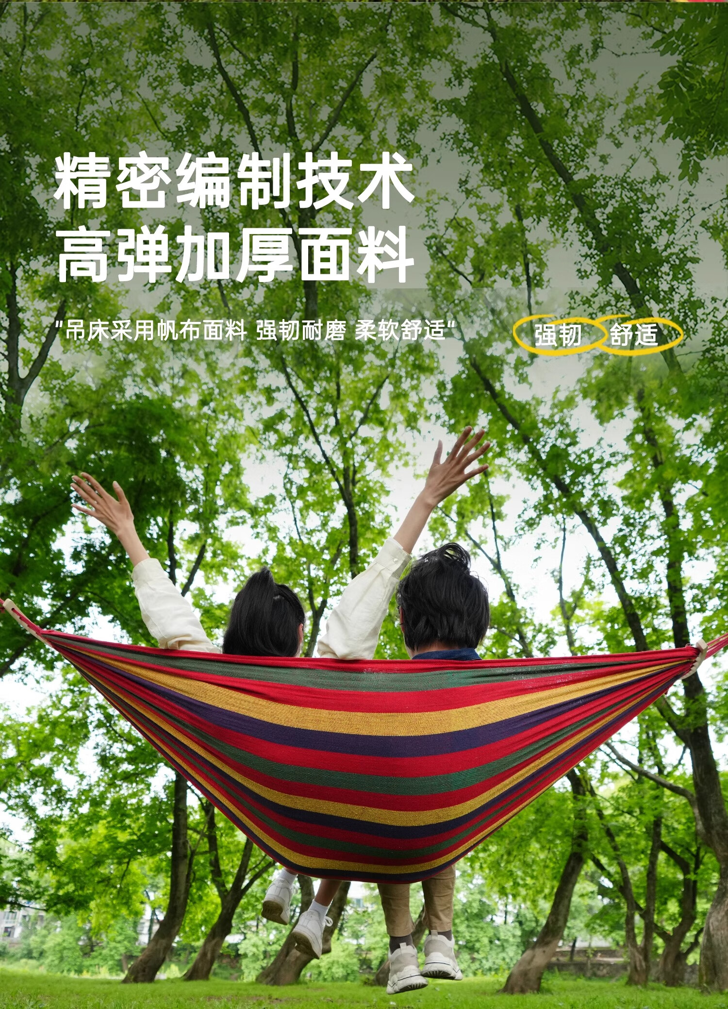 这款户外吊床真的绝了!! 最近入手的户外吊床简直是露营、郊游神器!拿到手就被它的品质惊艳到了,材质厚实又耐磨,承重能力超强,我和孩子两个人一起躺上去晃悠都完全没问题,安全感满满💪! 组装超简单,不用额外工具,按照说明书几分钟就能挂好。布料透气又亲肤,躺在上面吹着微风,简直不要太惬意~收纳起来体积小巧,还自带便携袋,塞进背包里一点不占地方,随时随地就能享受“躺平”快乐。 细节设计也超贴心,边缘加固处理,连接处的卡扣牢固又紧实,完全不用担心会松动。不管是放在后院树荫下,还是带去公园、河边,都氛围感拉满🌳!性价比超高,强烈推荐给喜欢户外的朋友们,绝对值得入手!