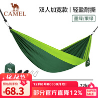 骆驼户外吊床防侧翻旅游露营野外便携收纳高承重休闲秋千吊床 LU102A 墨绿/果绿(双人加宽款)