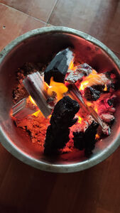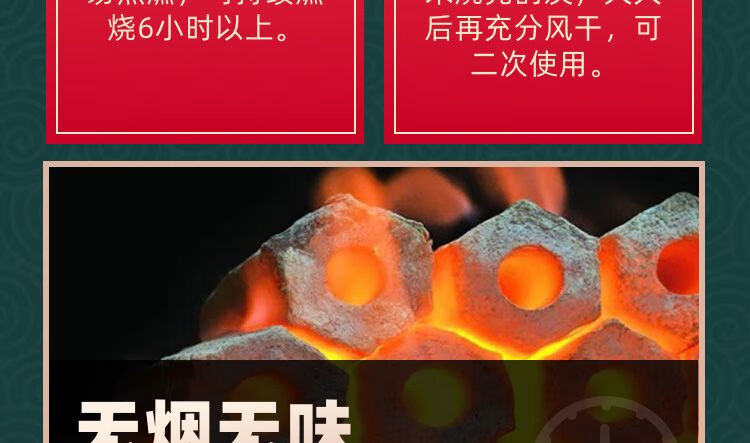 包装完好,里面碳有少许断裂,但不影响使用 无烟,无尘,火力强劲,但是燃烧时间没那么长,四小时左右一天到晚最少得加四次才够