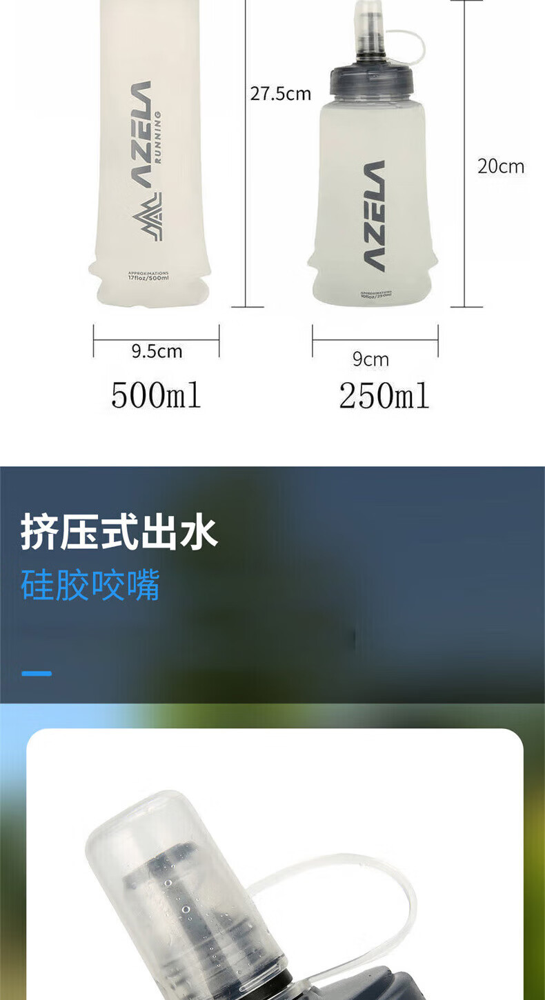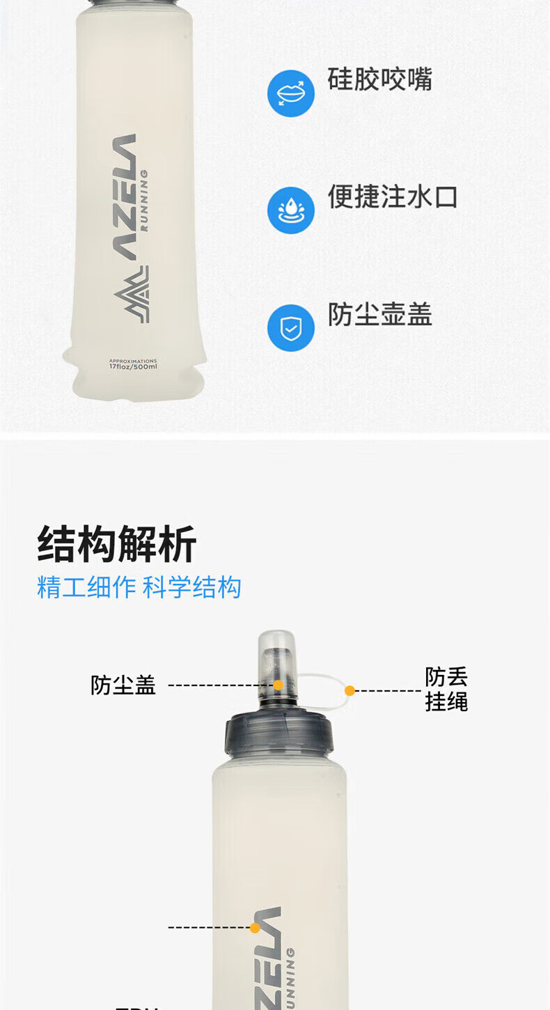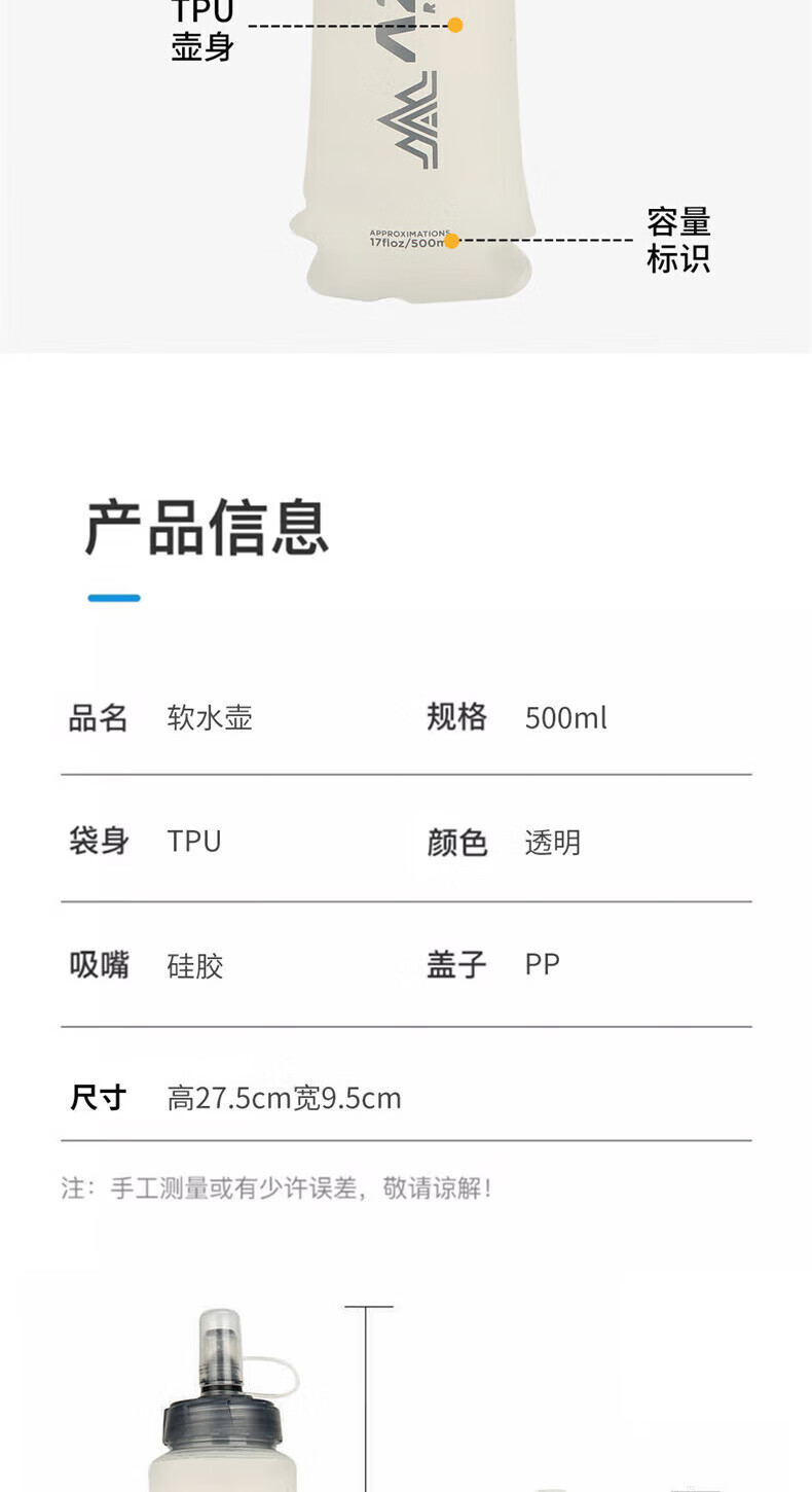 晴碧琳运动软水壶 户外跑步硅胶可折叠水袋骑行越野马拉松便捷水杯 运动软水壶(500ml)
