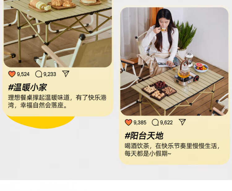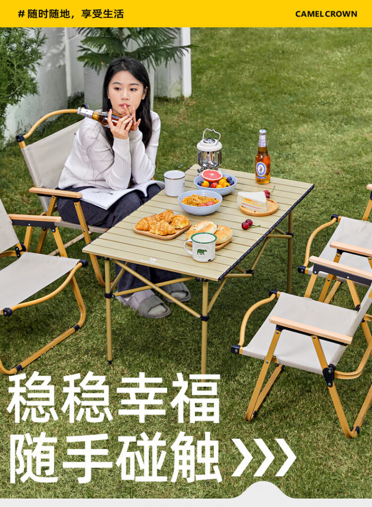 在阳光正好的周末,约上三两好友去露营野餐吧!骆驼的这款户外折叠桌椅套装,简直是露营爱好者的福音!铝合金材质,轻便又耐用,蛋卷桌设计收纳超方便,一卷一收轻松搞定。想象一下,在绿意盎然的草地上,摆上这张精致的小桌,放上美食和饮料,享受着自然的馈赠,简直不要太惬意!