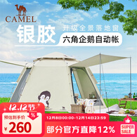 骆驼户外天幕帐篷一体防雨加厚便捷式折叠露营遮阳棚野营装备 173BA6B112A 黑胶 3-4人 奶酪色