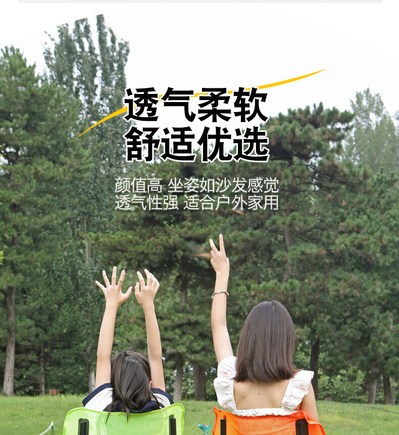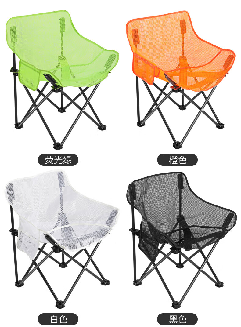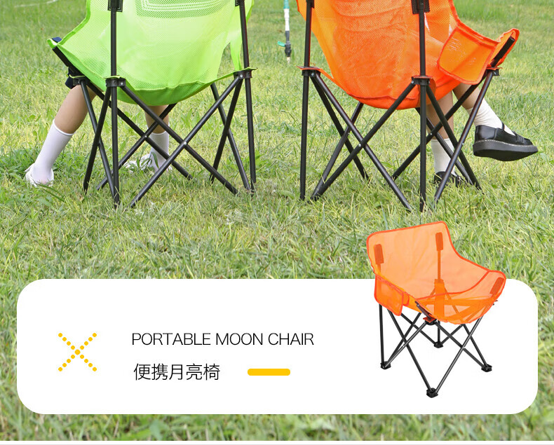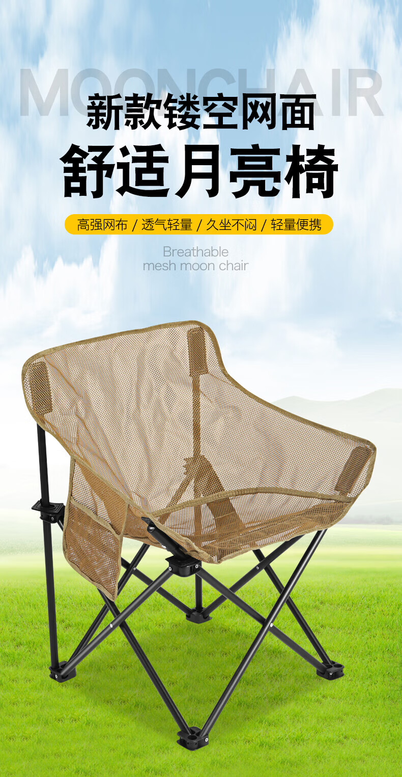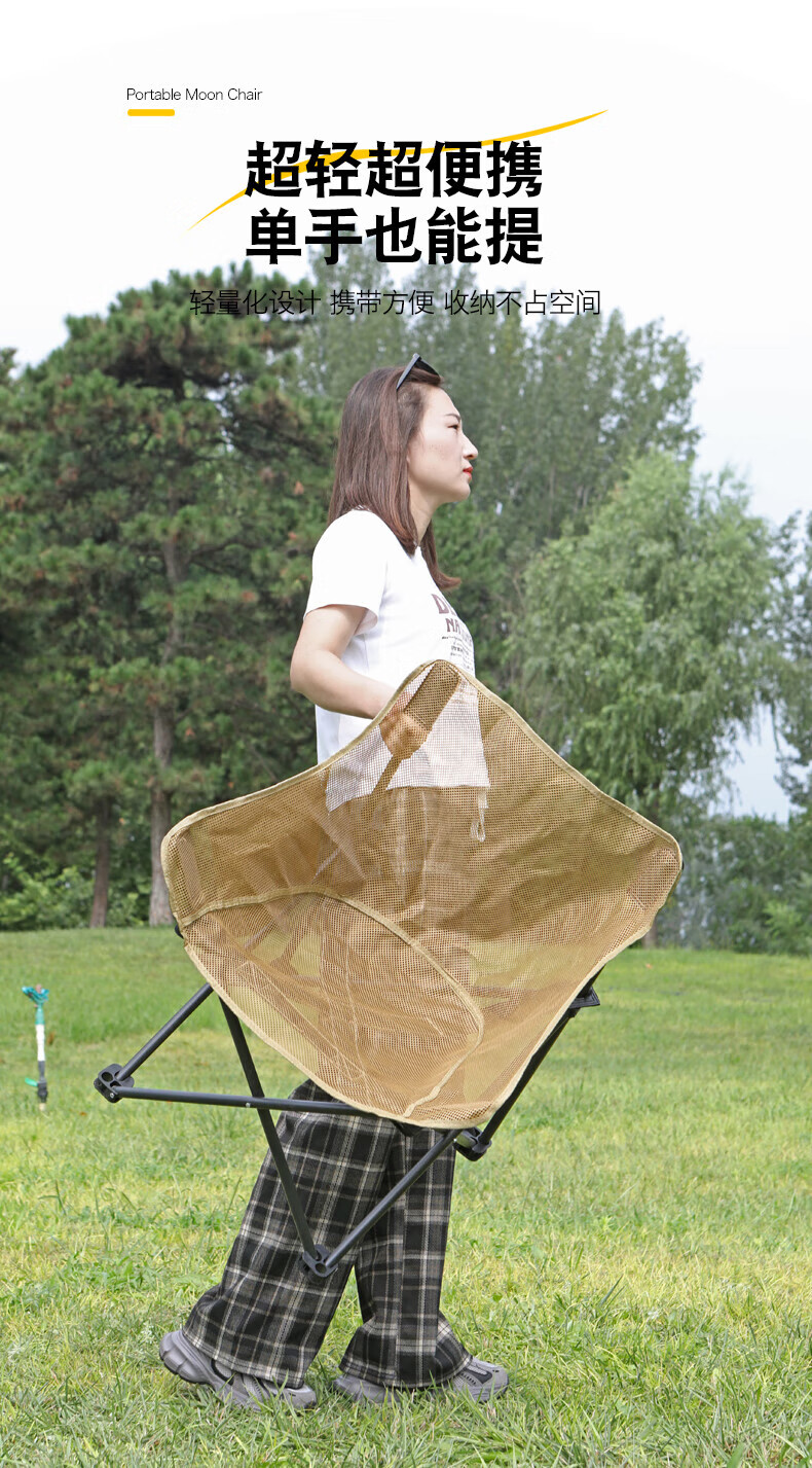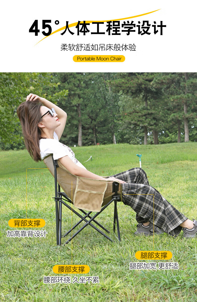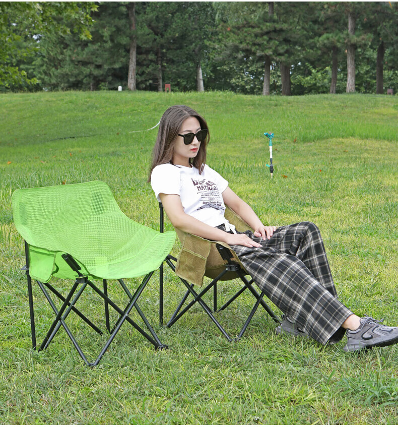 钻后户外折叠椅便携式月亮椅沙滩椅透气休闲露营野餐桌椅钓 //.镂空透气环抱月亮椅[荧光绿