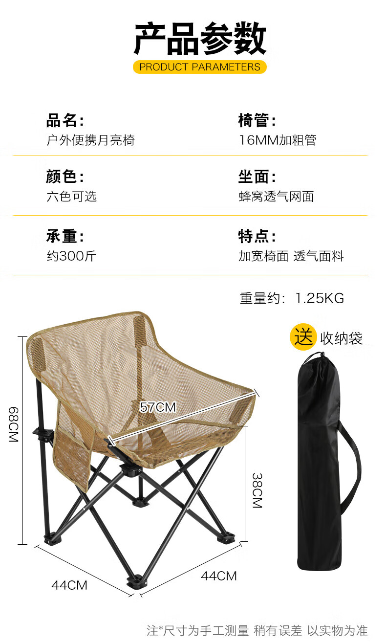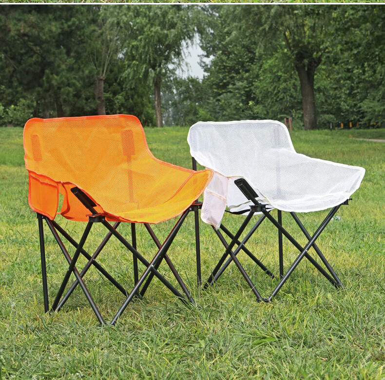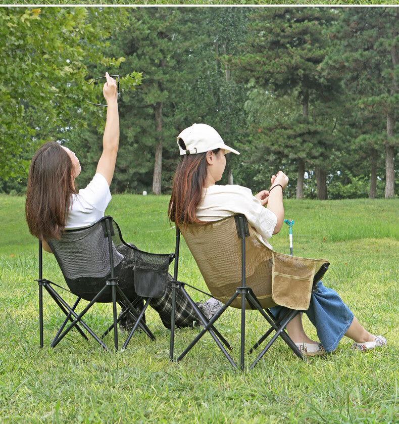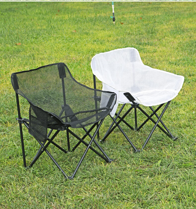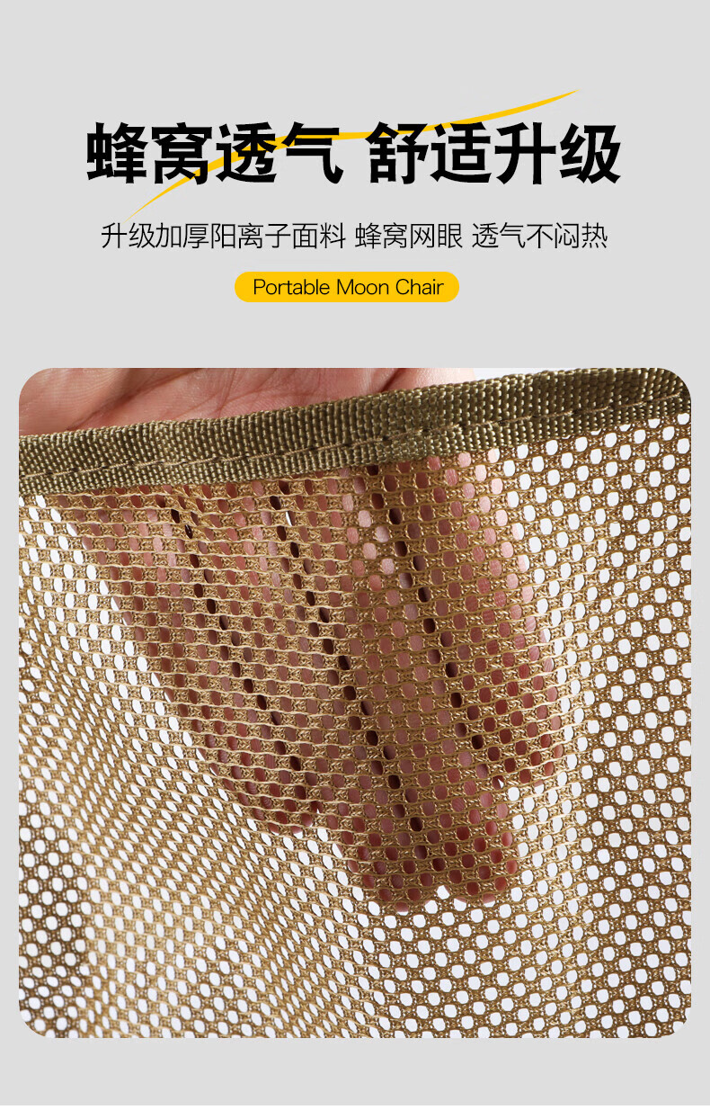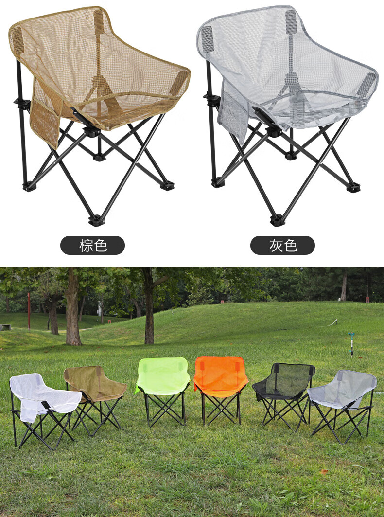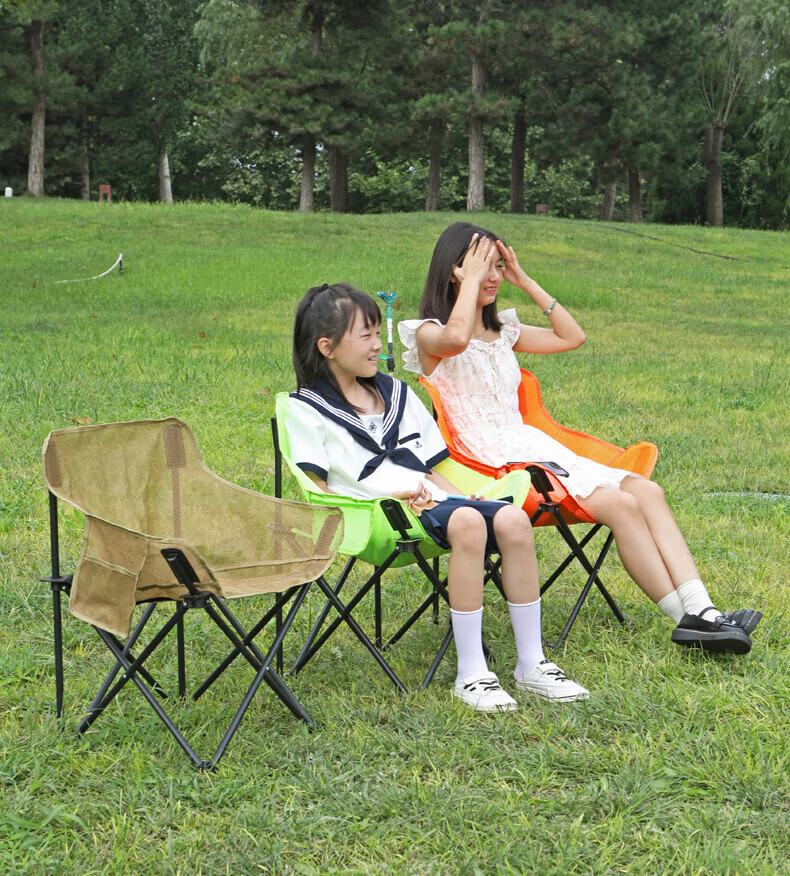 钻后户外折叠椅便携式月亮椅沙滩椅透气休闲露营野餐桌椅钓 //.镂空透气环抱月亮椅[荧光绿