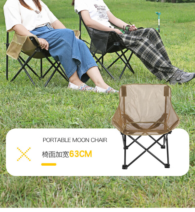mondoba户外折叠月亮椅便携野外露营钓鱼写生凳子舒适可躺加宽高靠背超轻 升级承重600斤【】 豪华升级-加大加高【爵士白】+收纳袋