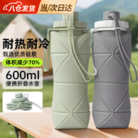 时鸟折叠水杯大容量户外旅行运动便携硅胶水杯耐高温食品级伸缩折叠杯 食品级硅胶耐热100度-【绿色600ml】