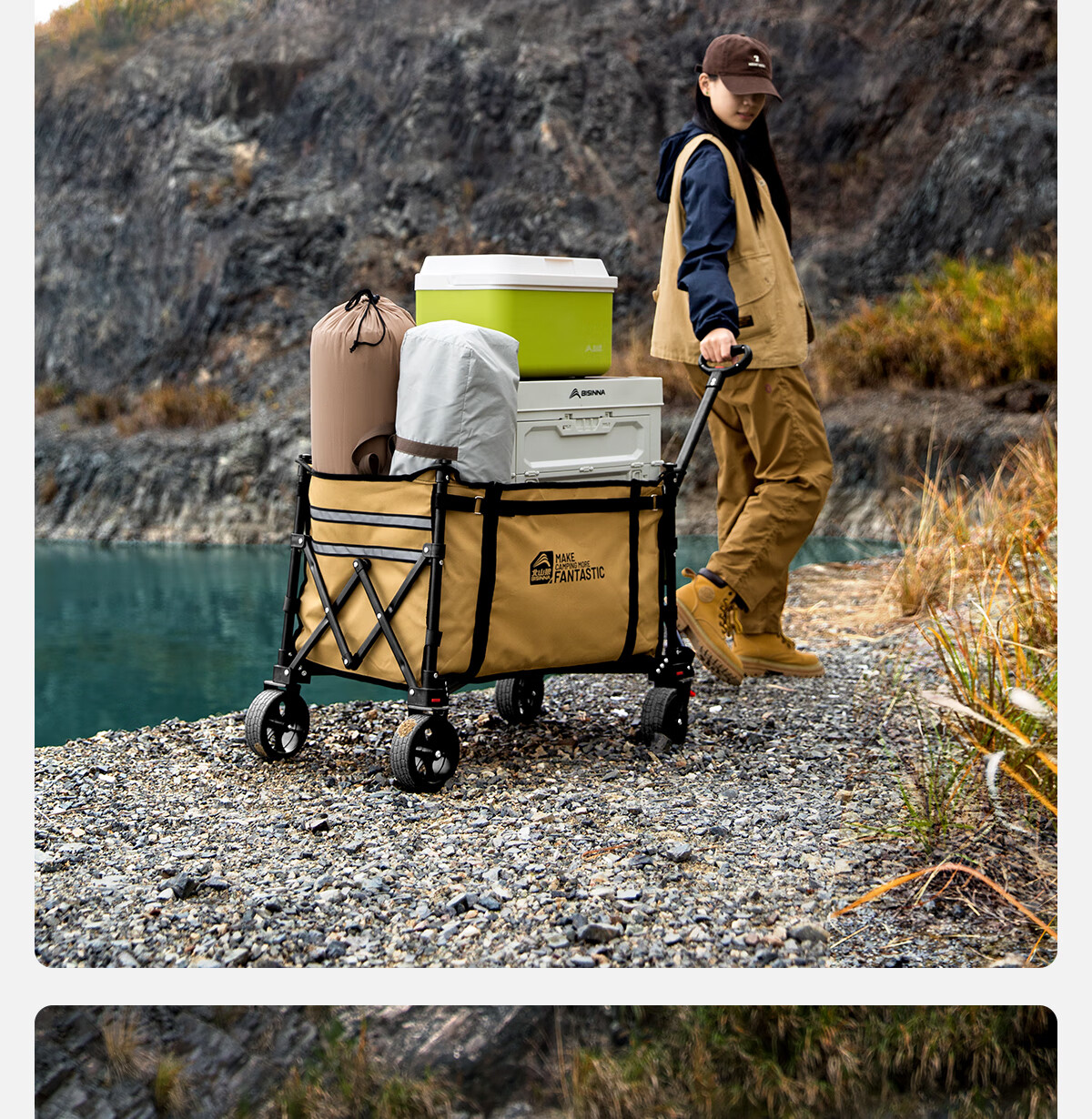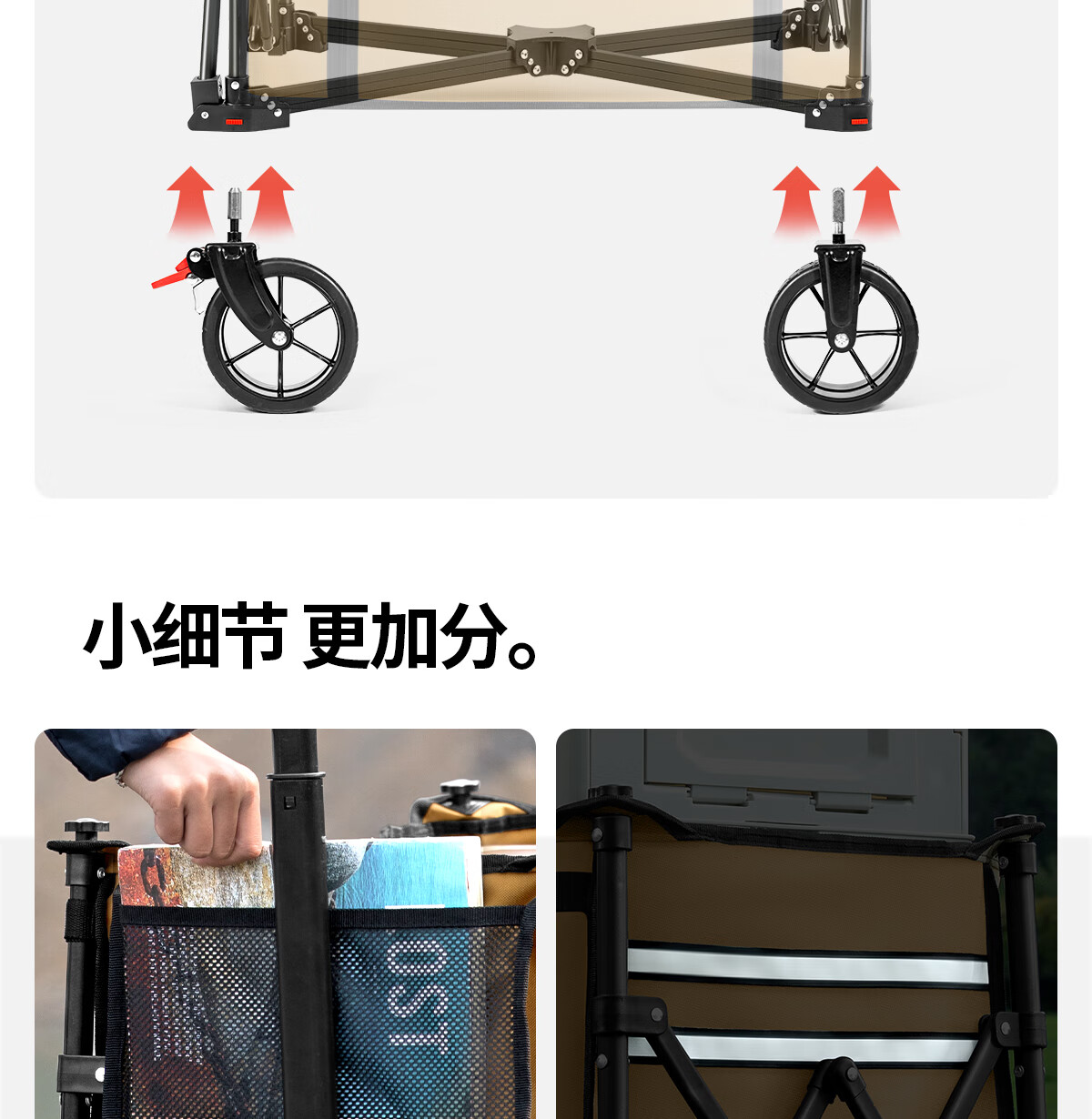 这款露营车真的太实用了!收纳展开都很方便,承重能力超出预期,周末带全家去露营,装了帐篷、桌椅、食材和孩子的玩具都没问题。轮子很稳,草地和石子路都轻松推,省力不少。折叠后体积小,轻松塞进后备箱