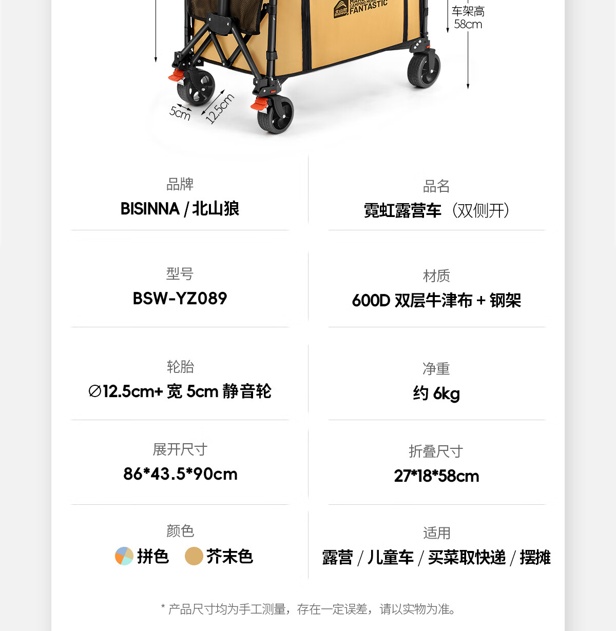 露营车很好用很轻便 也很结实 能装很多东西 ⛺质量很好,很扎实,收展都特别容易,拉起来也非常轻盈,放到后备箱里也不占地方.