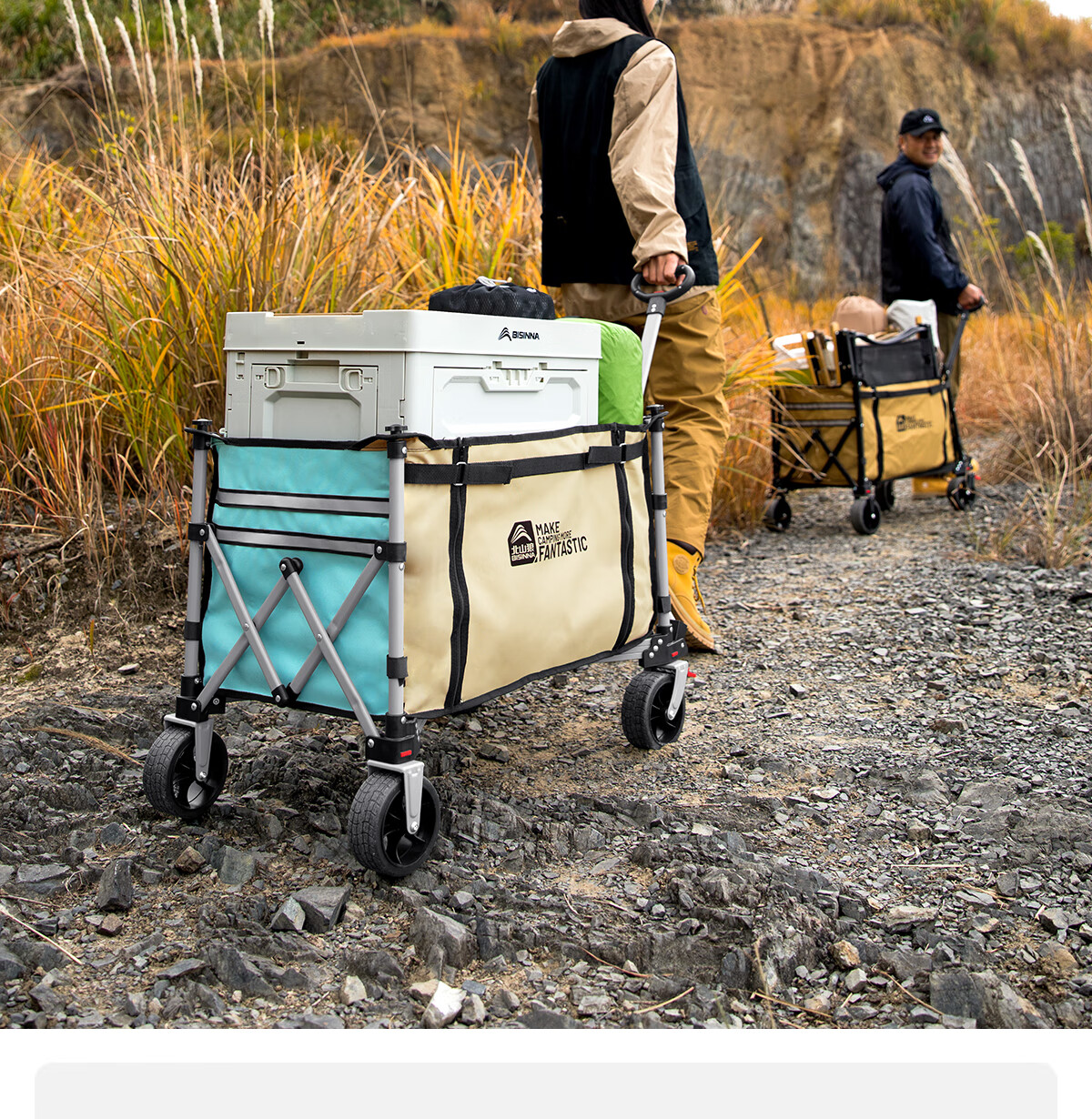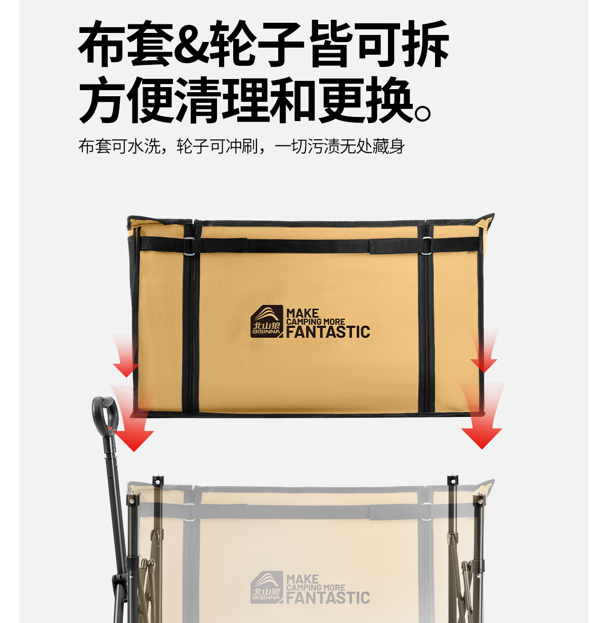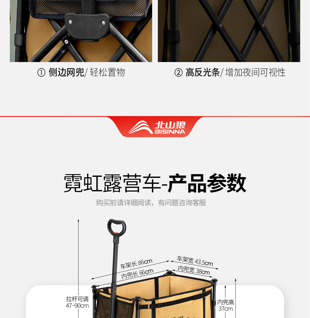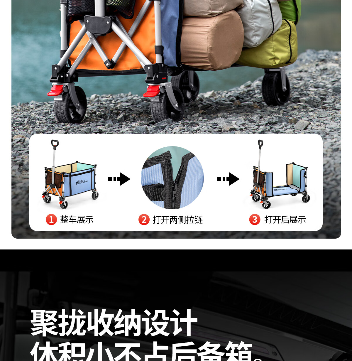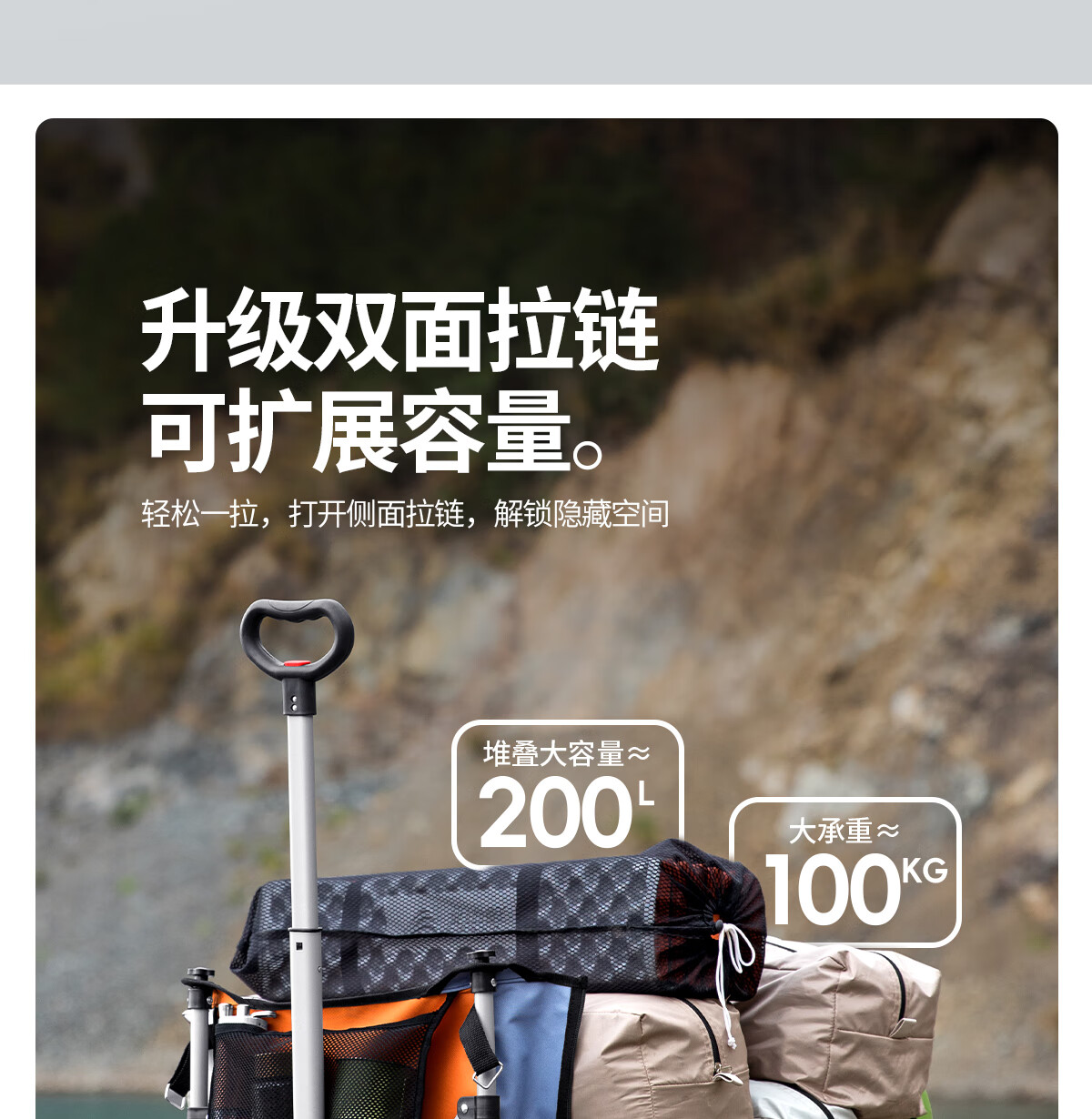 北山狼户外聚拢露营车 旅游野营便携推车升级双面拉链扩展大容量营地车 拼色-【升级双面拉链款】 200L 有刹车