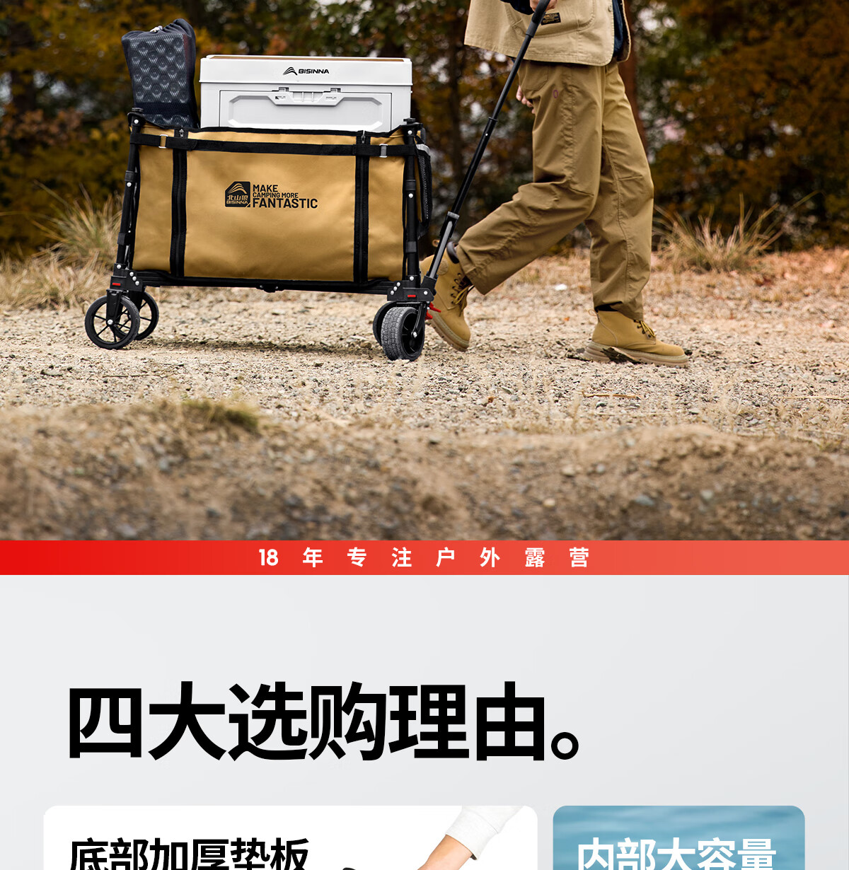 这露营车太实用了!折叠起来不占地方,推起来顺滑还能装超多东西,露营野餐拉装备贼方便,这质量也没得说,户外党直接冲!