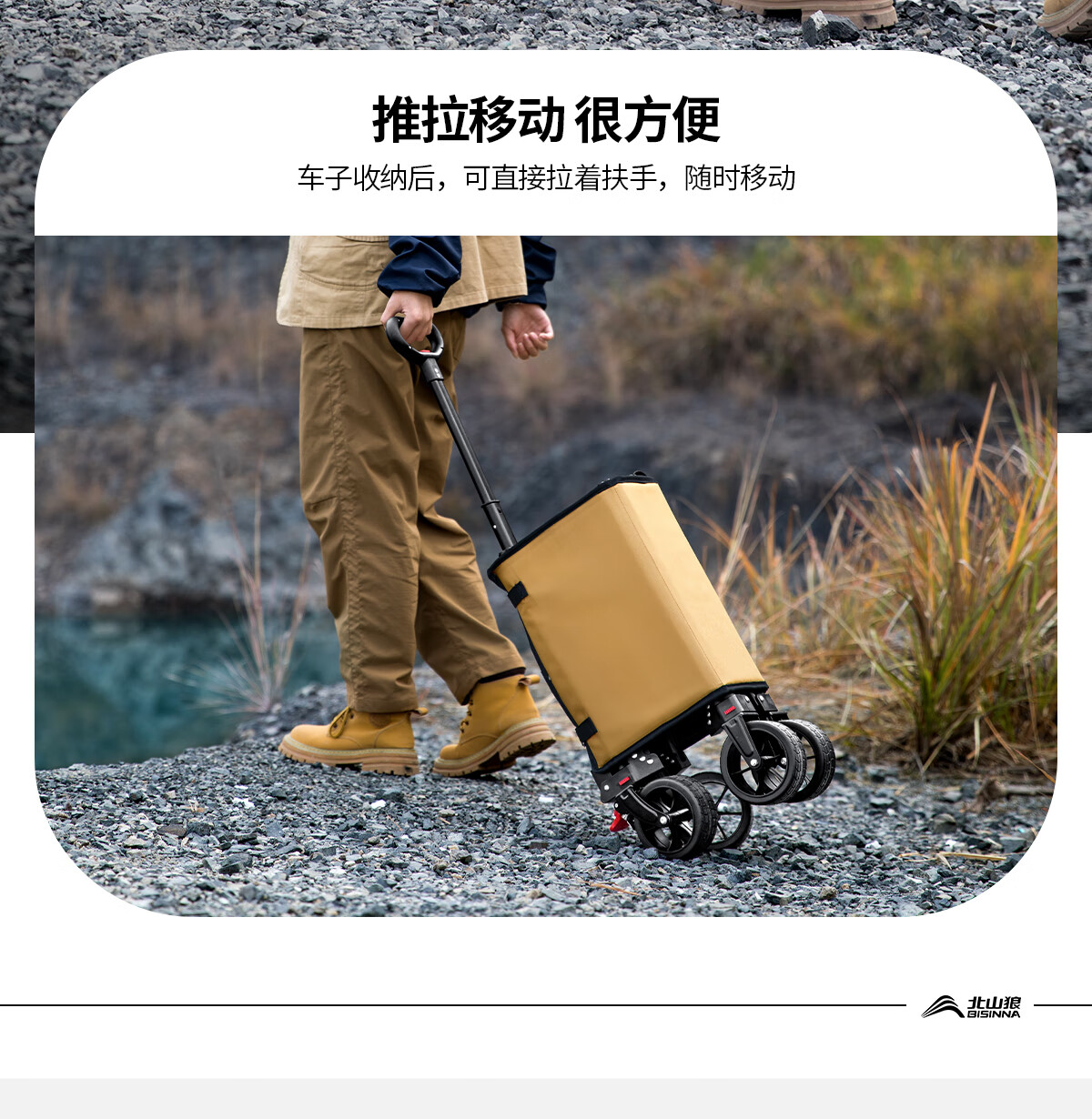 北山狼户外露营车聚拢大号营地车旅行野餐野营可推儿童遛娃手推车 海蓝色【推杆款】+黑色桌板