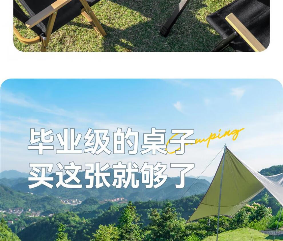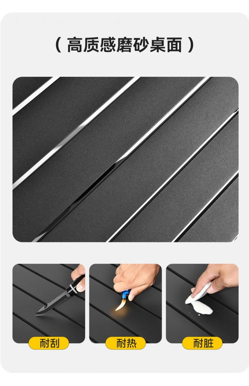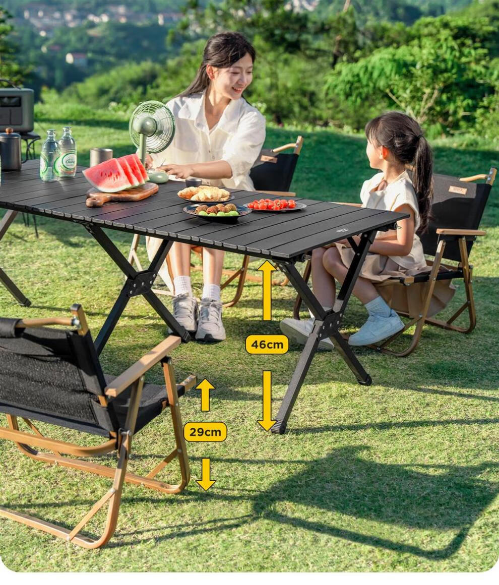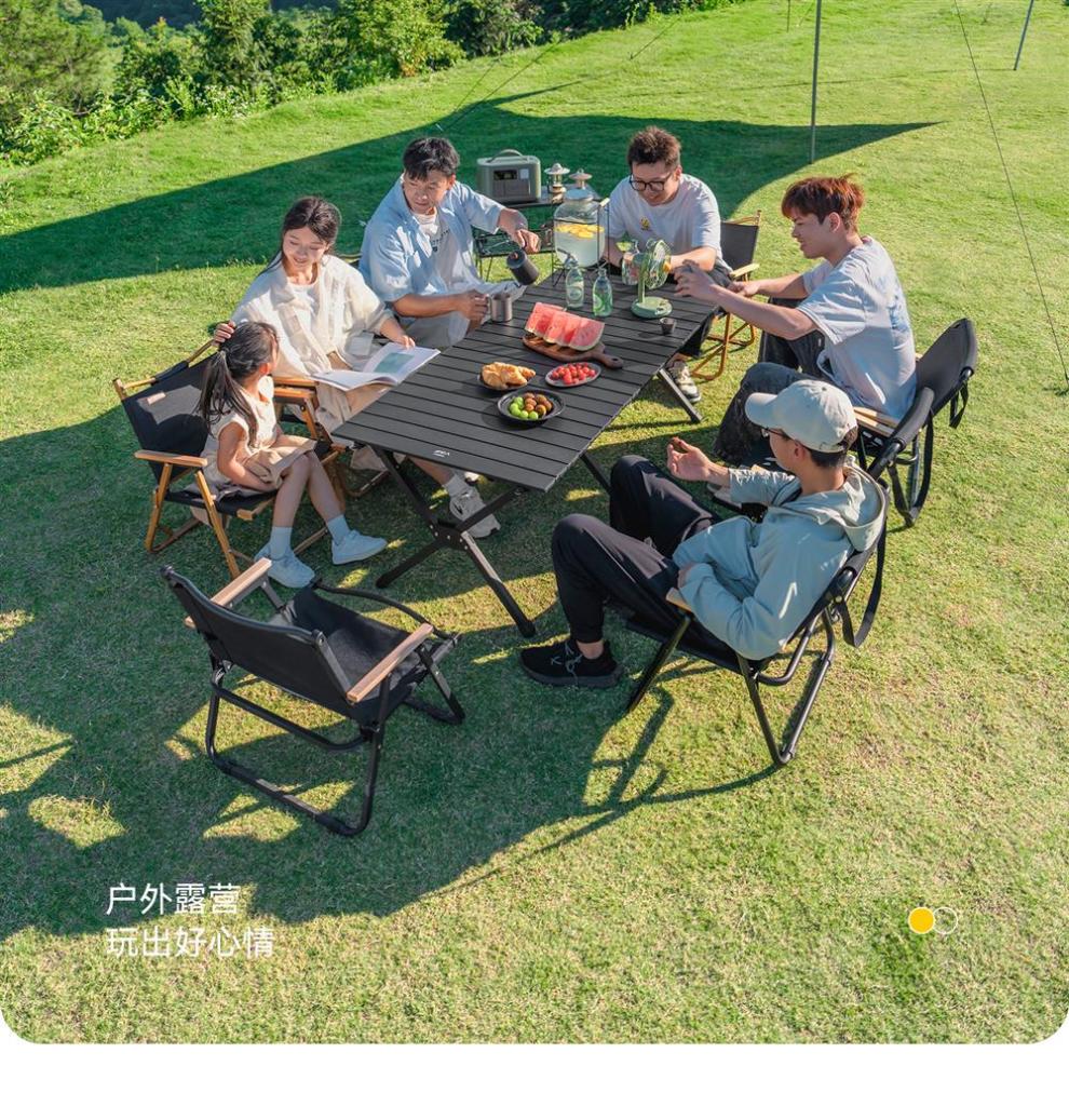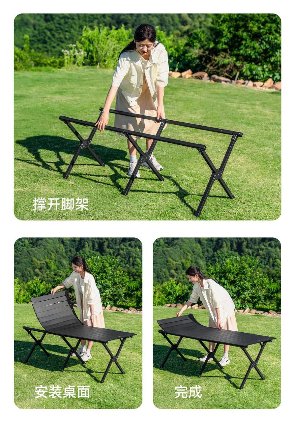 Guide Series户外铝合金折叠桌露营桌便携升降沙滩烧烤桌加宽桌自驾游车载桌 新 加宽金属 木纹黑色