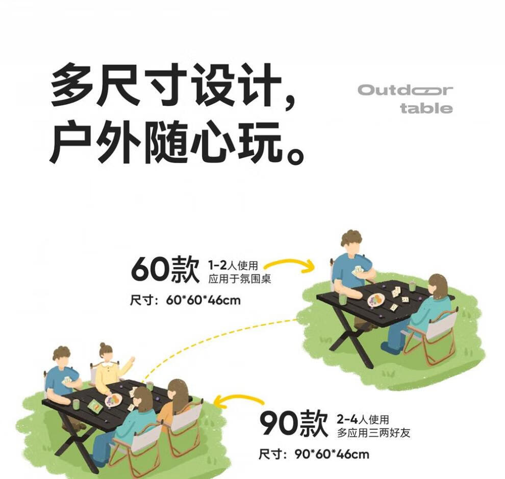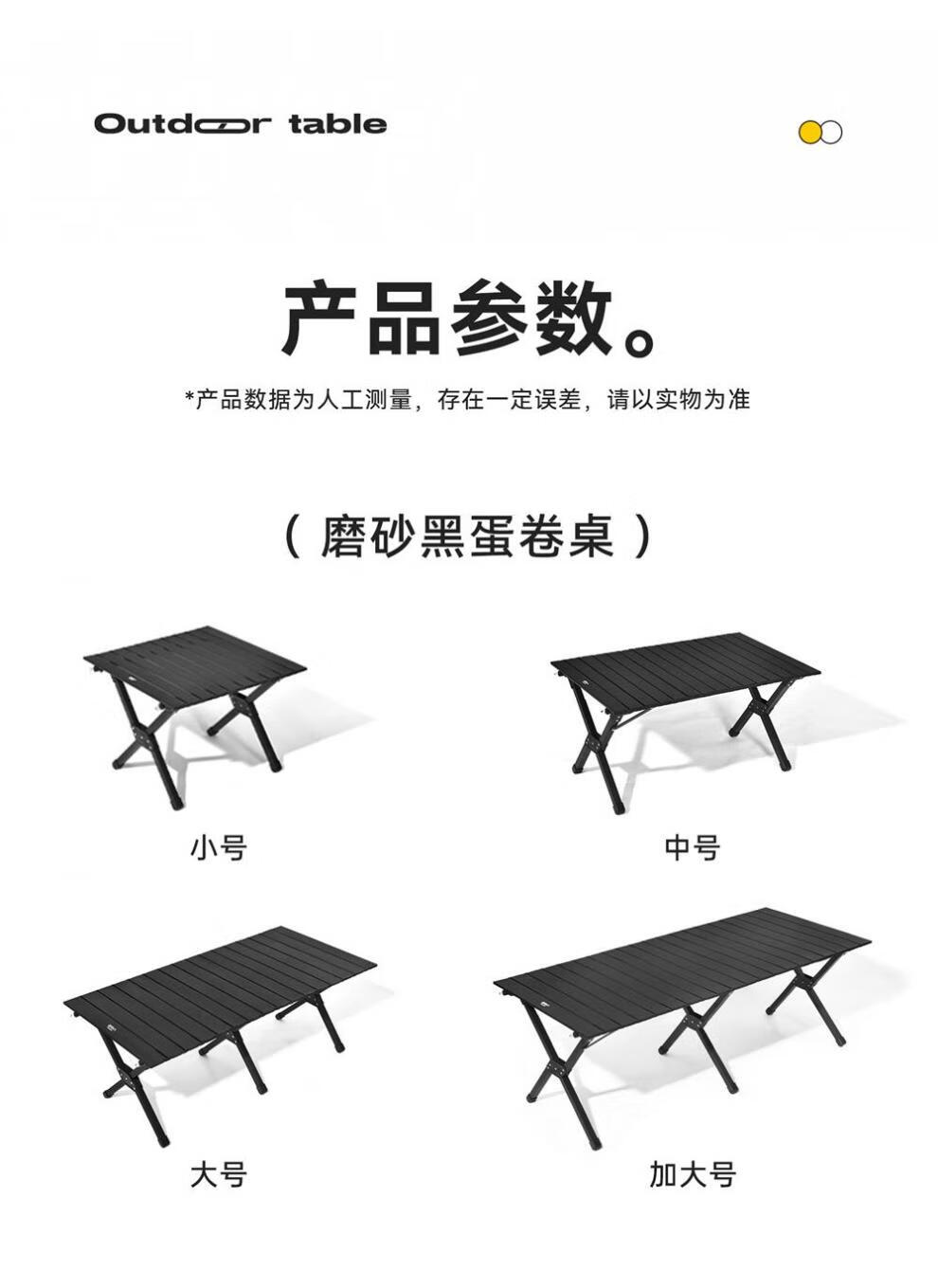 原始人户外露营桌椅蛋卷桌折叠桌子椅子一体便携野营桌椅全套装备 【25mm加粗管】小号磨砂黑60cm蛋卷桌(送收纳