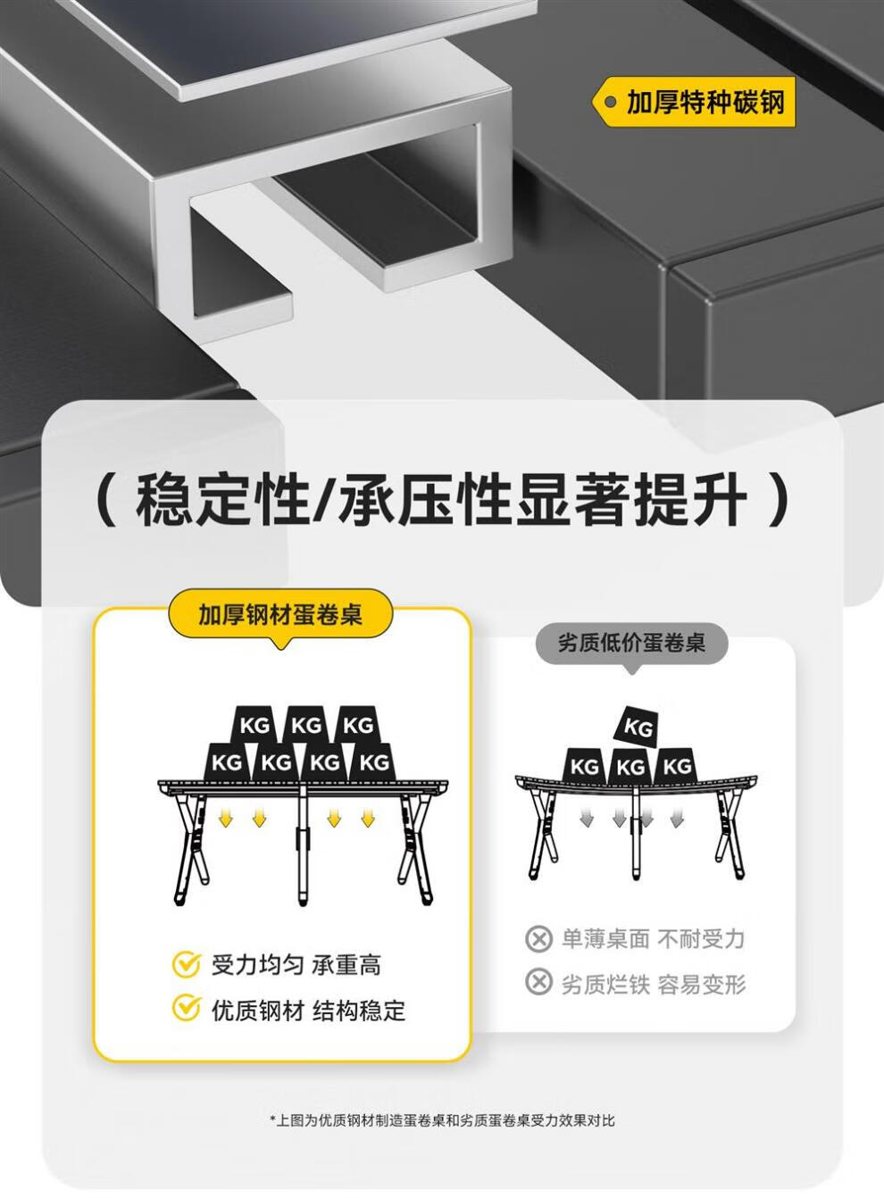 原始人露营桌椅户外折叠桌子蛋卷桌便携野餐装备用品椅子套装一体 (2.5+特粗钢管)磨砂黑60cm专利拉环款