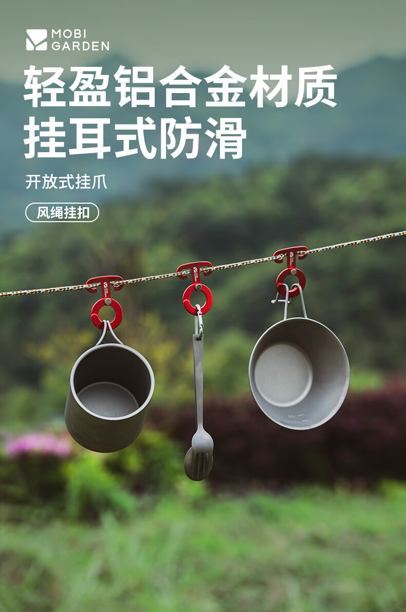 牧高笛(MOBIGARDEN)风绳挂扣 户外露营挂耳式风绳挂扣多功能挂钩 旭日红(1包)