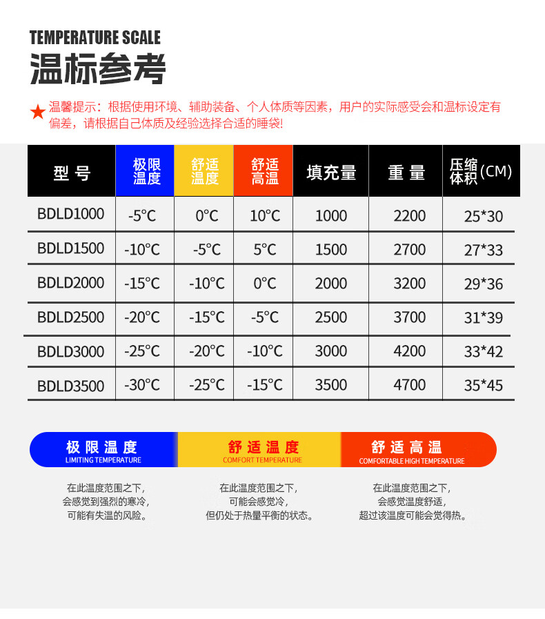 卖家服务先要赞一个,因为我 等用,他给我发了顺丰,及时收到。产品要赞一个,我们出去露营是初冬,下半夜温度在零度下,孩子妈体质冷,但是她带着孩子睡这个袋,一点都没觉得冷,我同时用一个3公斤的棉袋,就冻得睡不着。回家以后再用被套分开套了俩张羽绒被,还是温暖舒服。真心好货!