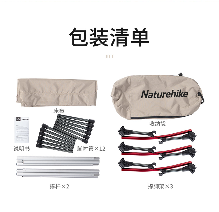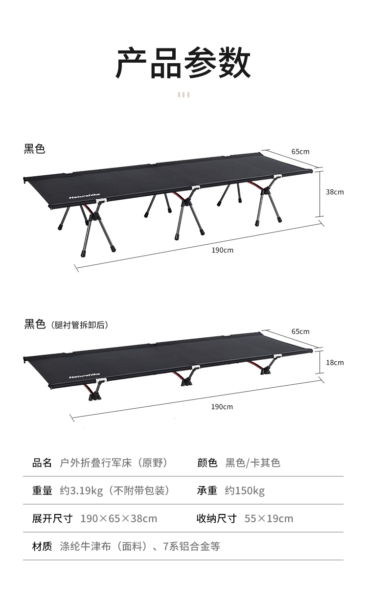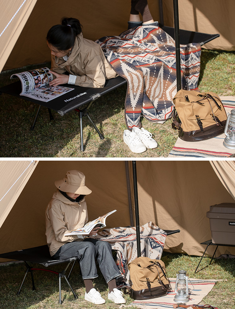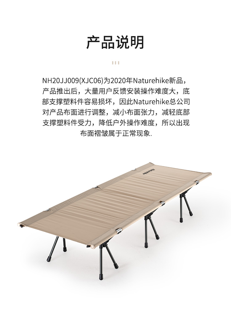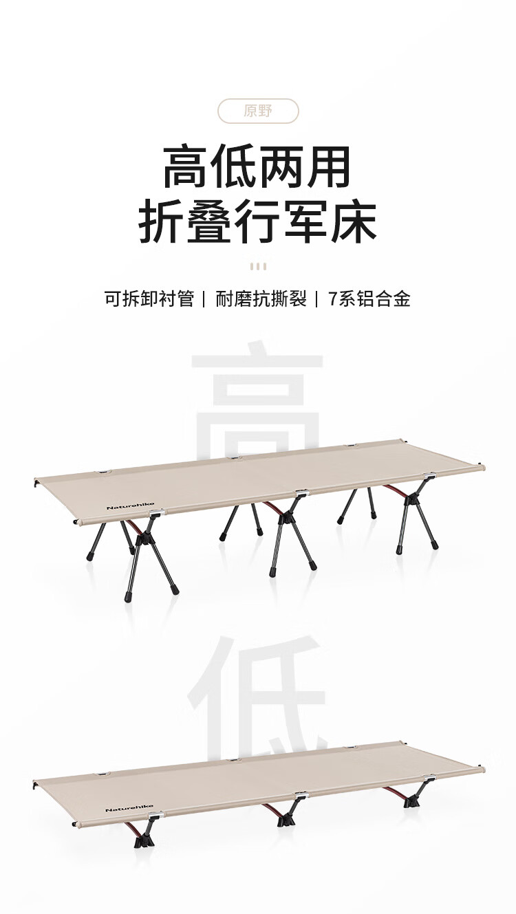 Naturehike挪客军野户外折叠行军床超轻便携两用陪护床躺椅办公室午睡单人床 卡其色/单人/高低两用款