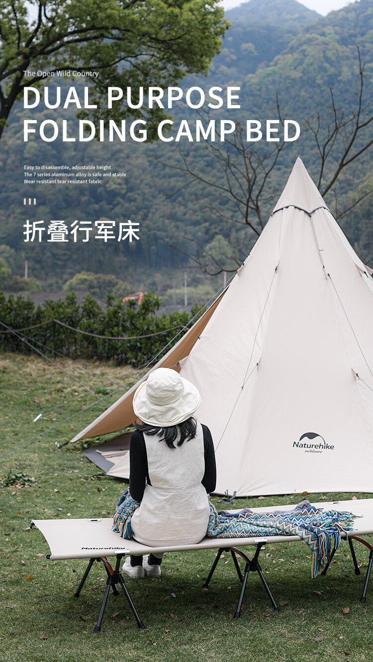 NatureHike 挪客户外行军床 便携医院陪护床简易办公午睡午休躺椅野外折叠床 卡其色