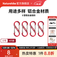 Naturehike挪客户外多功能8字登山扣铝合金S型水壶灯包挂扣挂钥匙挂钩链接环 红色/小号(4个装)