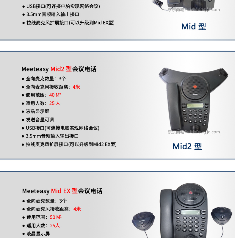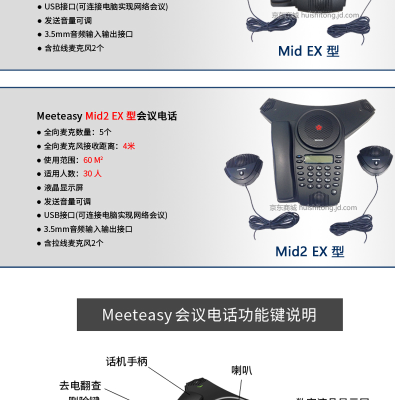 好会通(Meeteasy)会议电话机/电话会议/视频会议/全向会议电话机/会议全向麦克风八爪鱼 Mid EX (50平米)