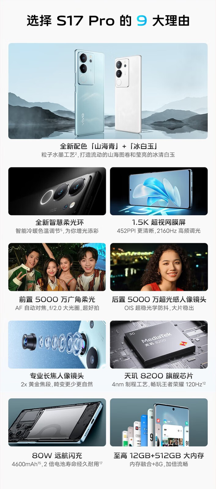 vivoS17 前置5000万广角柔光 后置智慧柔光环 1.5K超视网膜屏 花海 12GB+256GB 单机+第三方品牌+店保1年