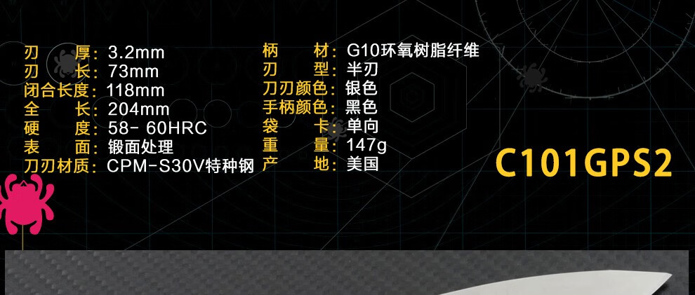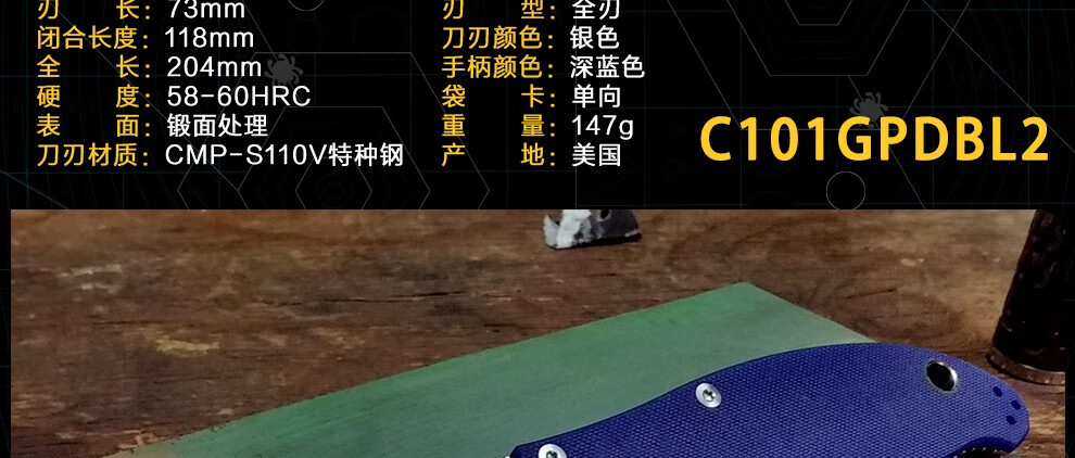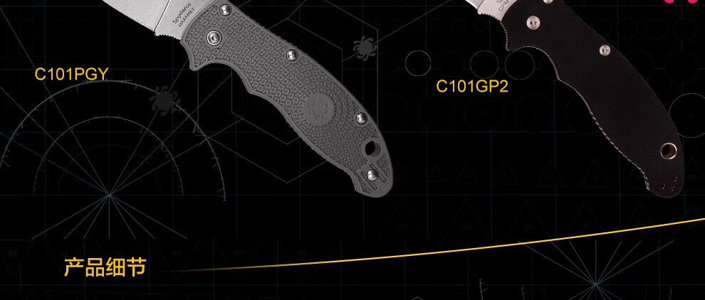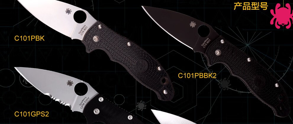 SPYDERCO美国蜘蛛C101PBBK2 Manix黑色户外轻量便携折刀CTS BD1N 黑色 60°以下 118mm 7.3cm