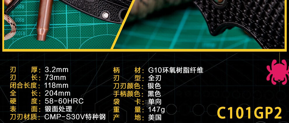 SPYDERCO美国蜘蛛 C101 Manix2多功能刀具野外生存粉末钢户外刀 C101PBBK2