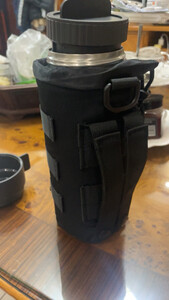 齐莛户外可调节水壶套带保护套战术附件腰包圆扁椭圆形保温套水杯套袋 黑色不含水杯