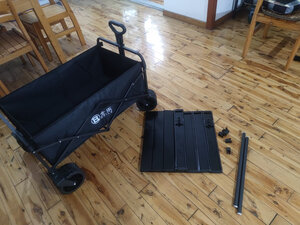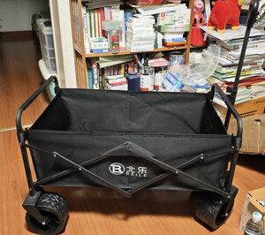 车子比较大,应该可以装比较多的东西,有桌板的设计,所以可以减少那种所谓的露营场景的桌子需求。对于露营场景不在乎就是装椅子、烤箱或者简易炉灶、天幕或者简易帐篷什么,是装的下的。轮子比较粗大,就是商家所谓的坦克轮把,过那种湿软的地段可能有帮助,关键是带刹车,可以当桌子使用的时候提供稳定性。