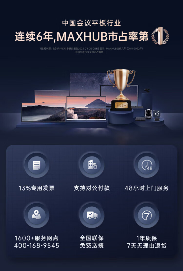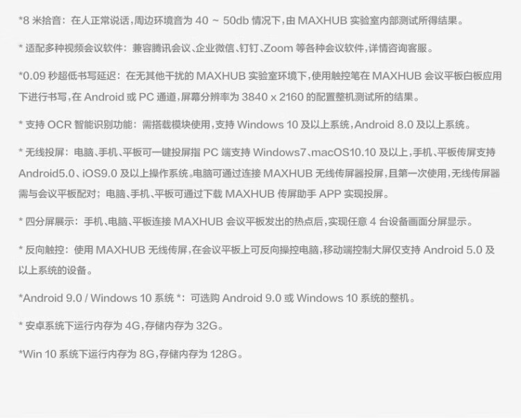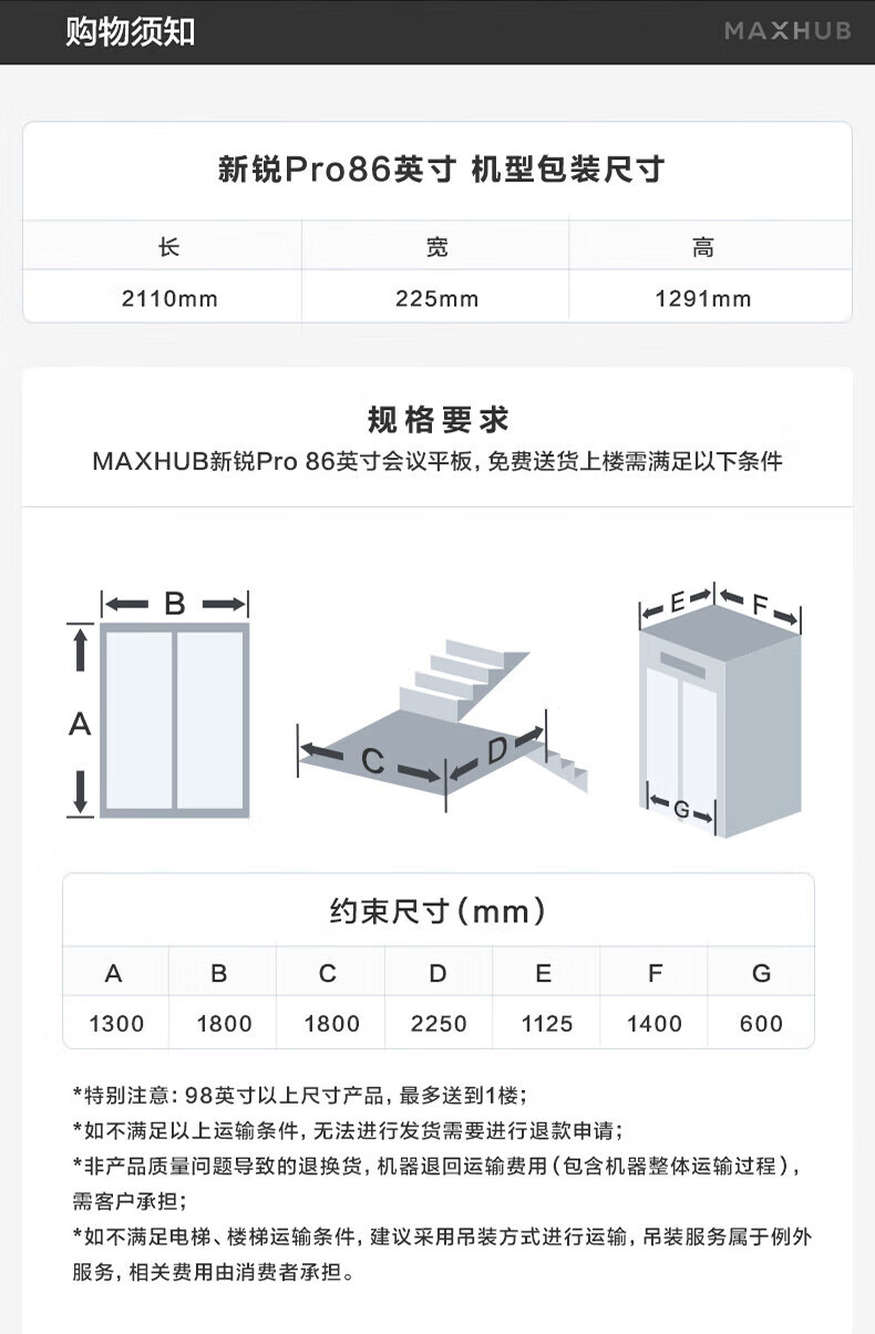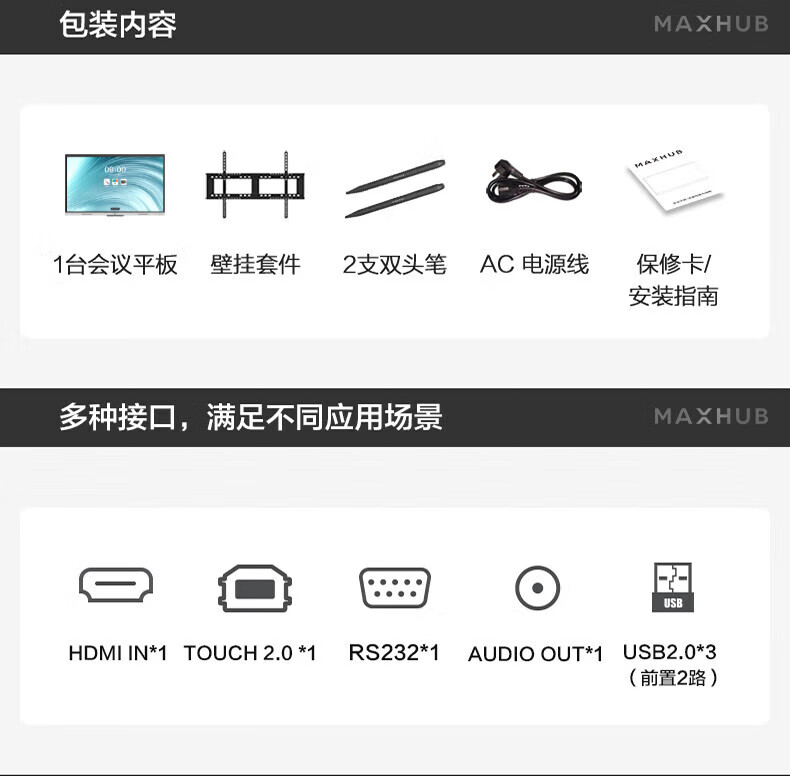 MAXHUB会议平板V7新锐Pro65\/75\/86英寸视频会议触摸一体机EG**DS 86英寸EG86DS-Win10系统
