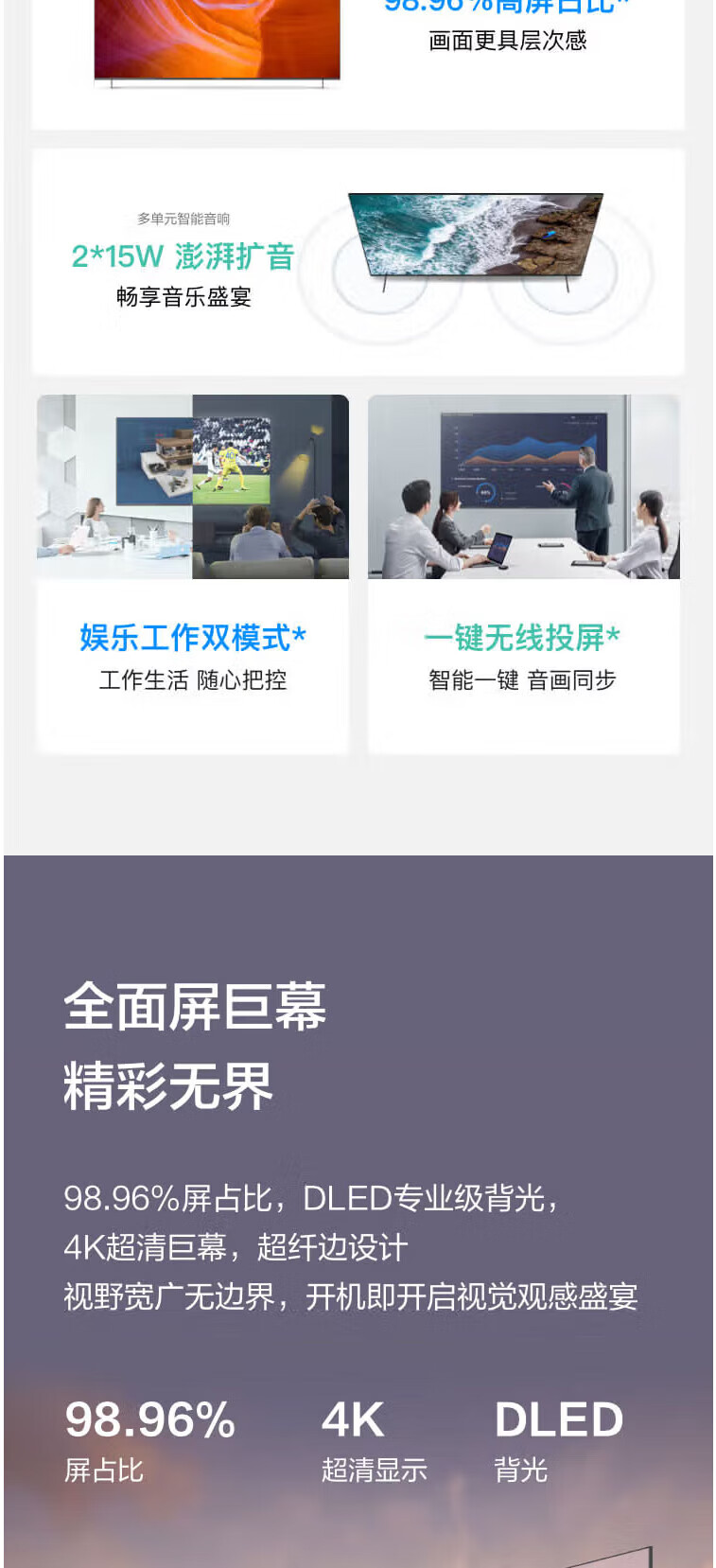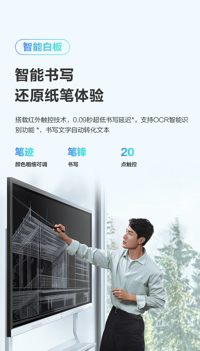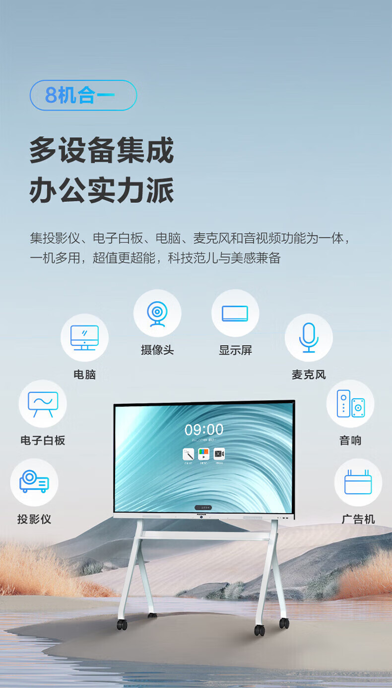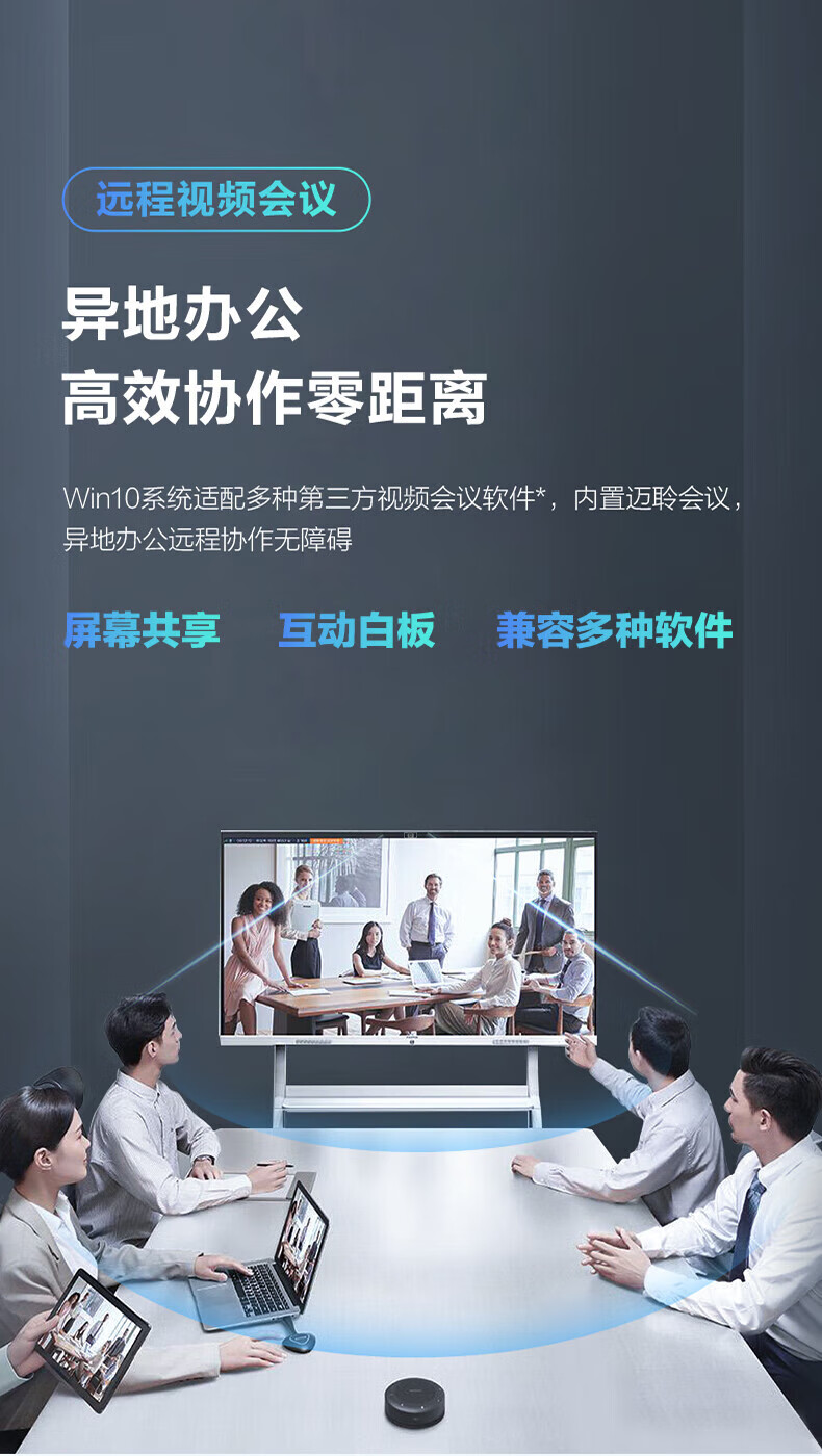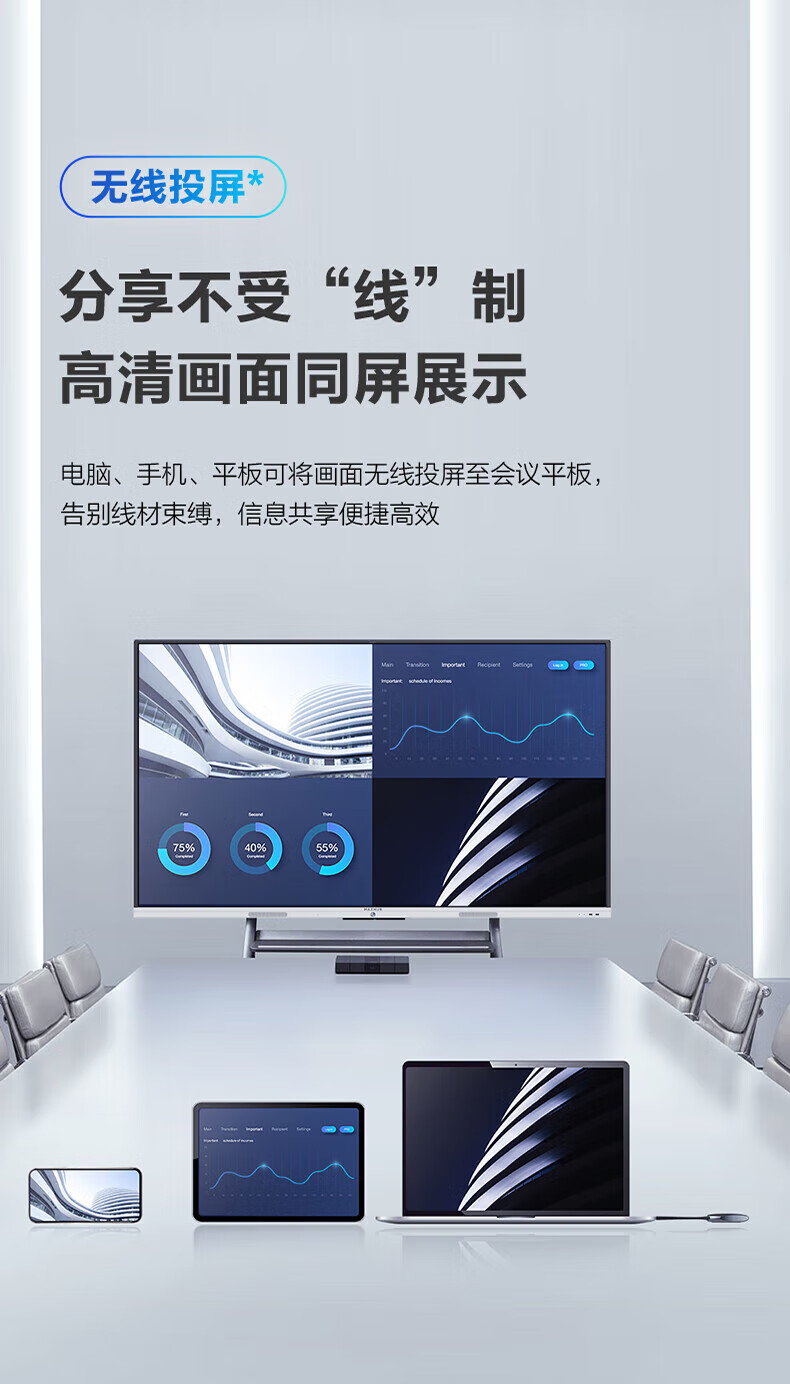 商用显示会议解决方案 75/85/98英寸可选非触控无线投屏会议一体机4K巨幕企业智慧屏 【单屏款】智会屏W100PN3