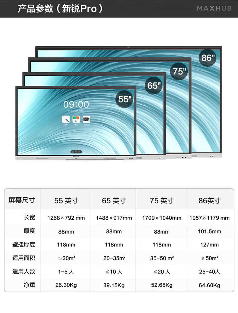 MAXHUB会议平板V7新锐Pro65英寸教育教学一体机触摸大屏EG65DS 65英寸-Win10系统(壁挂安装) MAXHUB