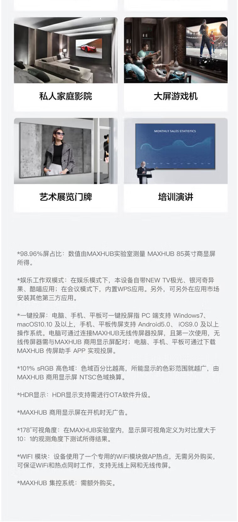 maxhub100英寸巨幕商用显示器/智慧屏/数字标牌教学/展示/培训/会议大屏 W100PN3