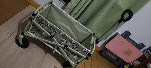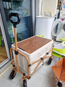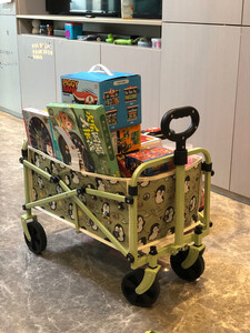 比较小型的露营车,折叠式不占位,收纳很方便。大小合适,平时拉个快递啥的也挺方便。称重120斤也够用了。外表可爱稳固不摇晃,推起来也不费劲。就是轮子比较单薄就一层塑料,噪音较大,不静音。