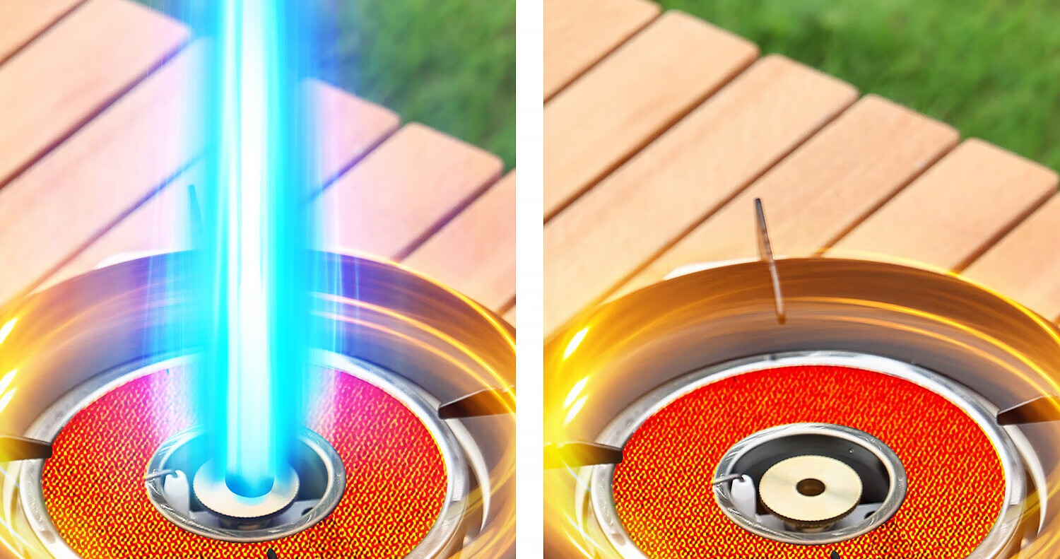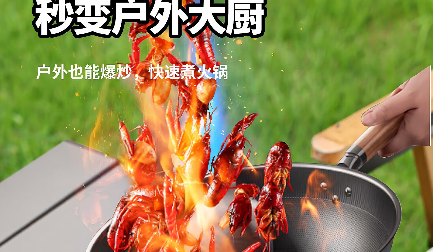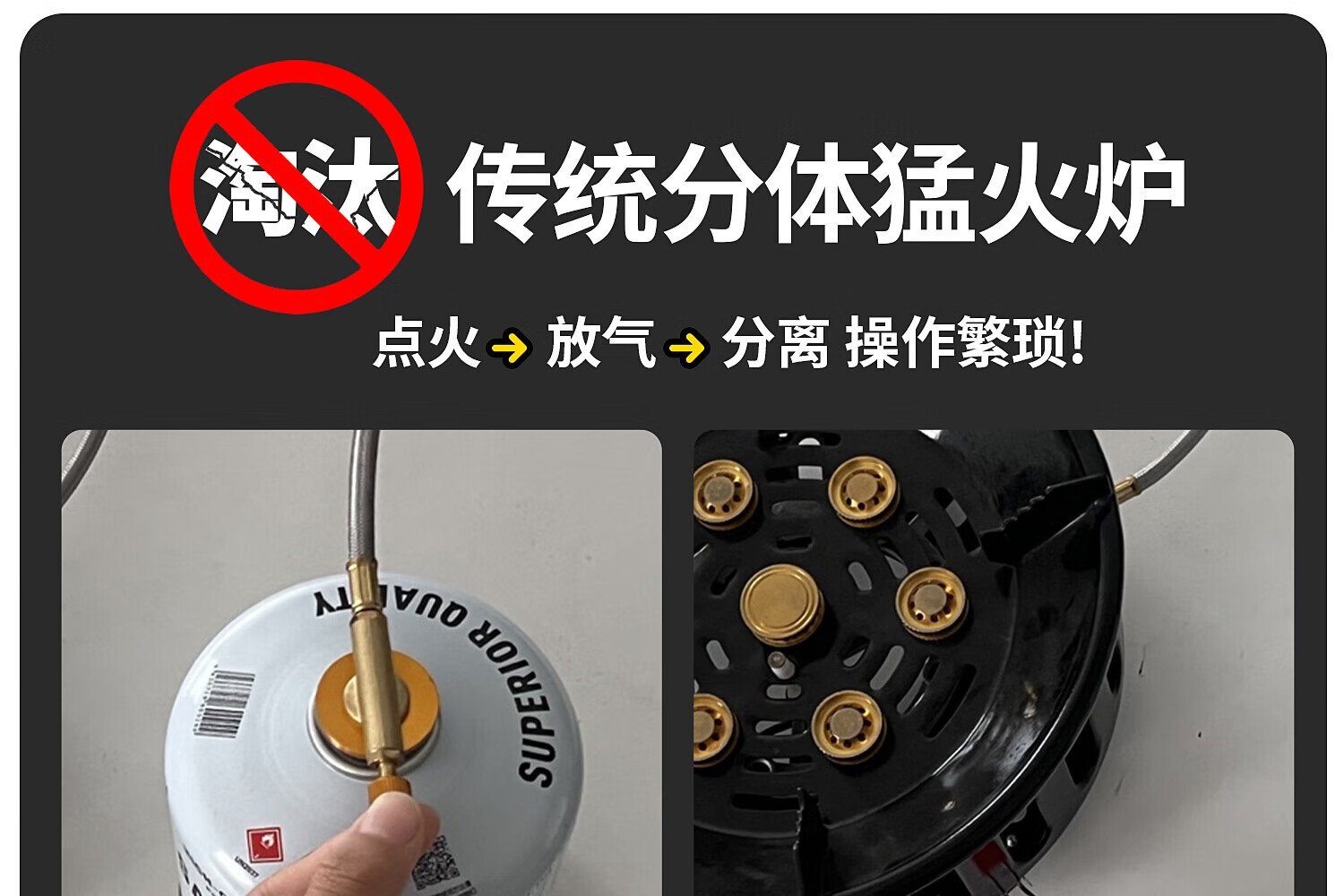 分体设置安全可靠,火很大,没一会就煮好了,并且不用用挡风板,户外露营特别合适。