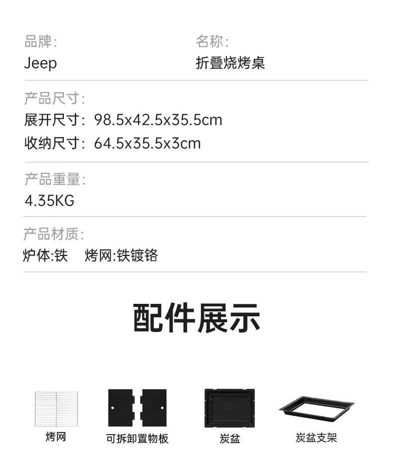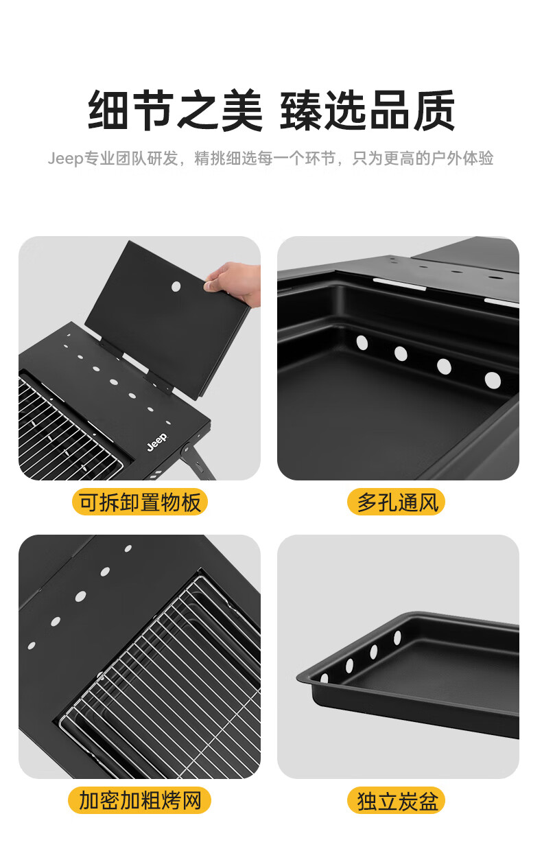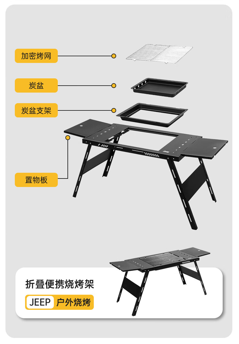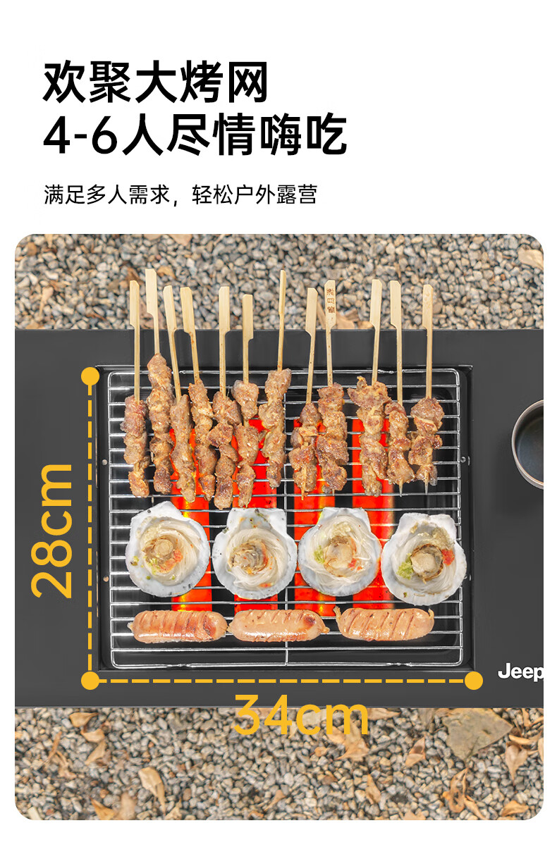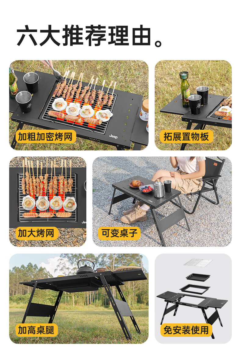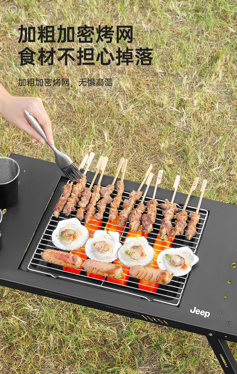 JEEP烧烤桌户外不锈钢一体式家用烧烤碳烤桌可折叠便携式木炭烧烤架子 一体式烧烤桌